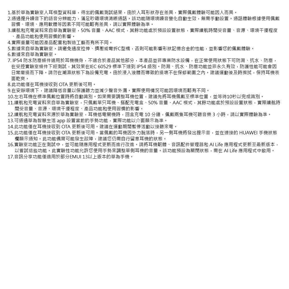 內容配件:耳機 1 對;充電盒 1 個;快速指南 & 安全信息1 套;USB充電線