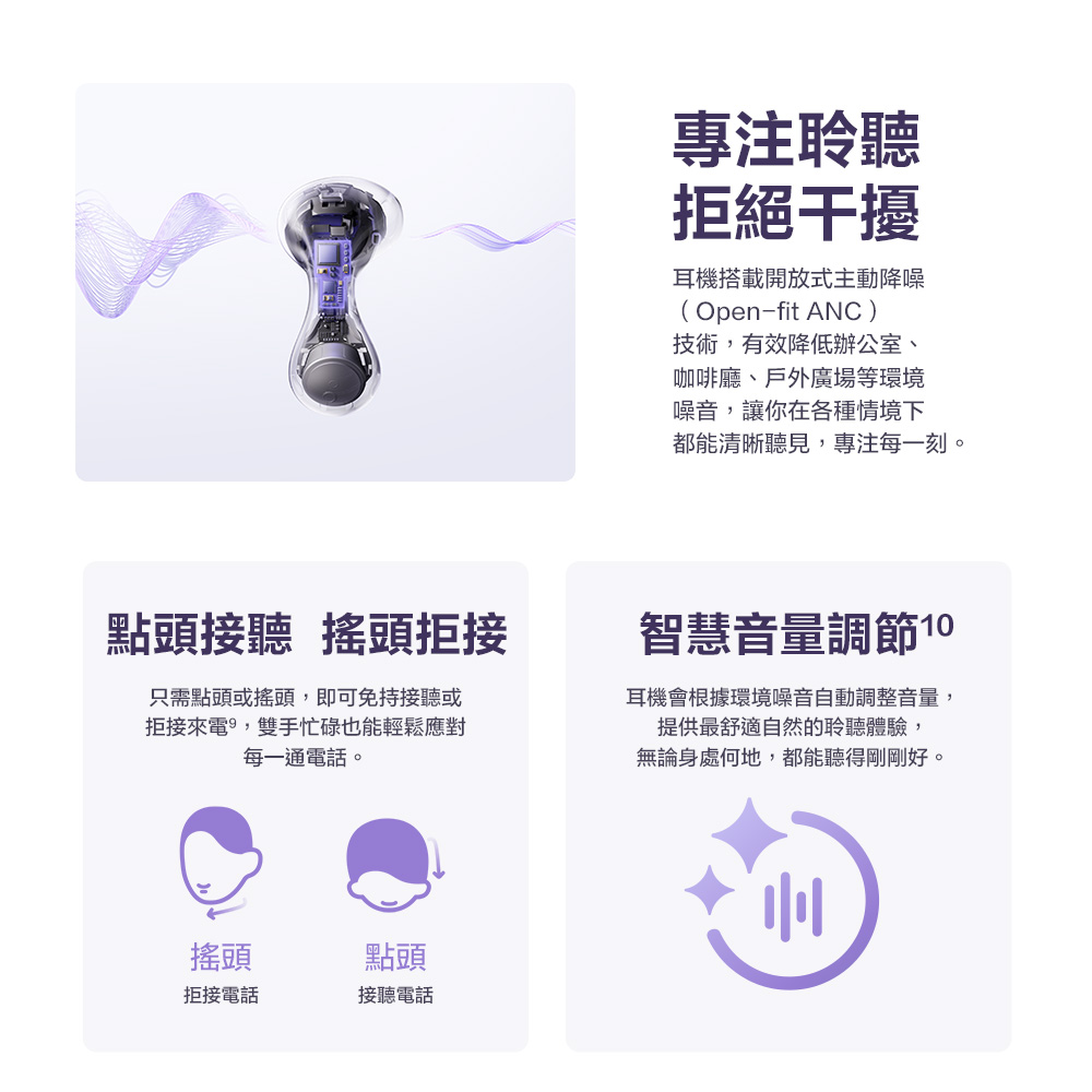 🔅支援雙向靜謐通話,有效去除環境雜音,保留乾淨清楚通話人聲