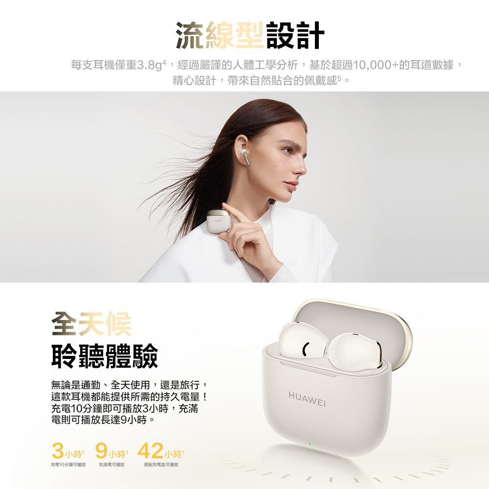 內容配件:耳機 1 對;充電盒 1 個;快速指南 & 安全信息1 套;USB充電線;4個耳塞