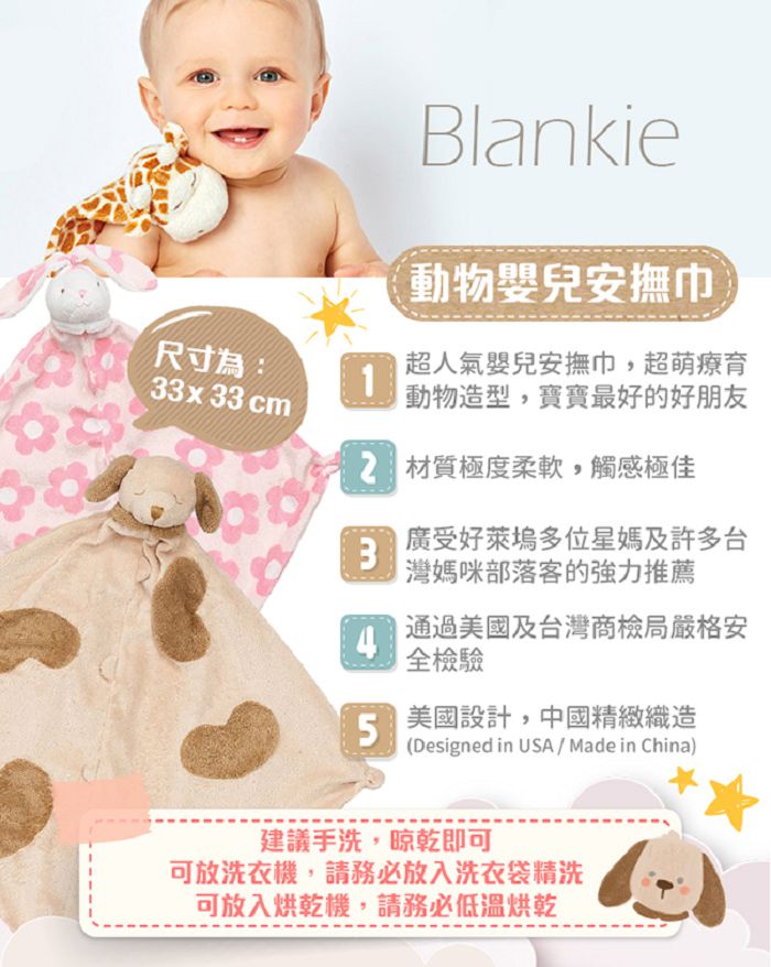 ◆全球超人氣嬰兒安撫巾, 超萌療育動物造型