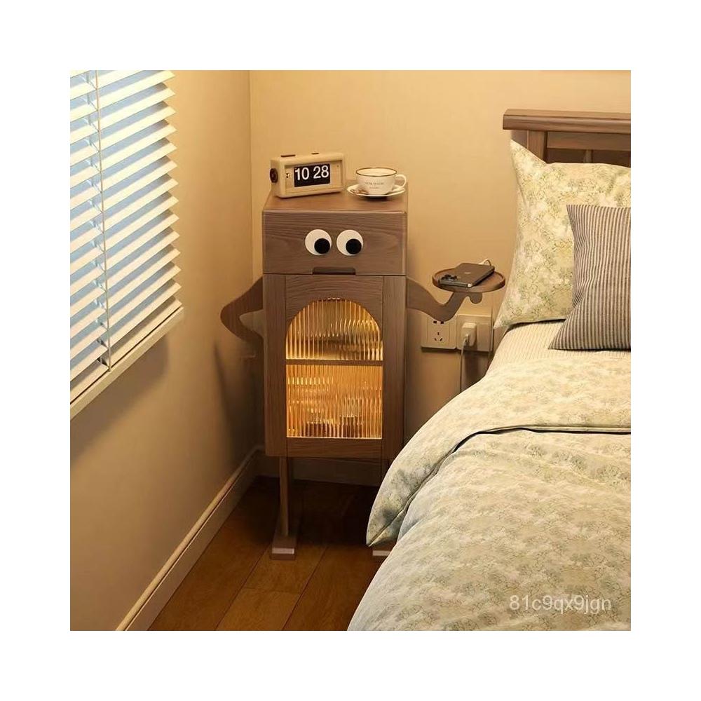 免運 創意木質家具 喬遷禮物 冬木機器人床頭櫃帶燈全實木邊幾側邊櫃客廳電視置物櫃創意床頭櫃 大眼睛叉腰床頭櫃 木邊幾