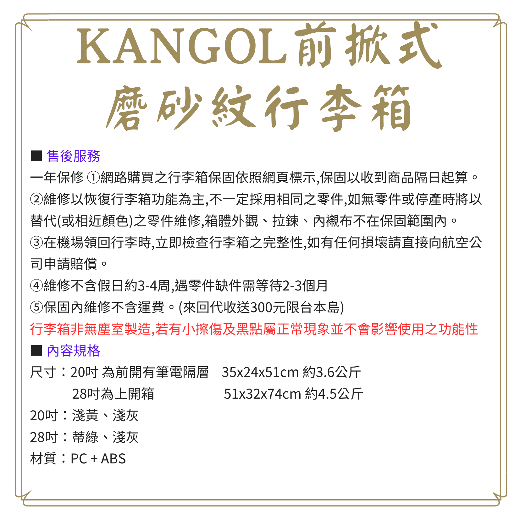 【KANGOL】英國袋鼠 20吋 28吋前掀式 防盜拉鍊 上開式行李箱