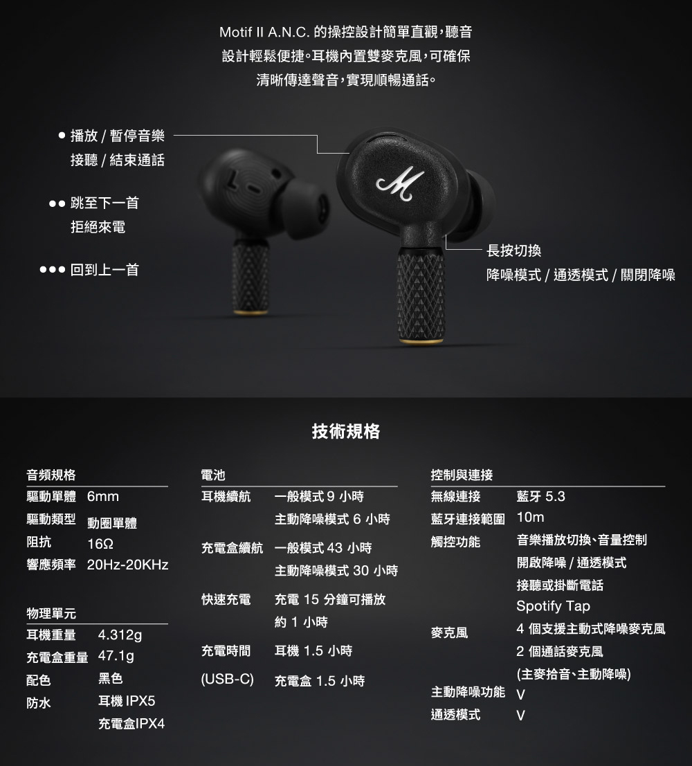 Marshall 馬歇爾音響 MOTIF II ANC 真無線耳機