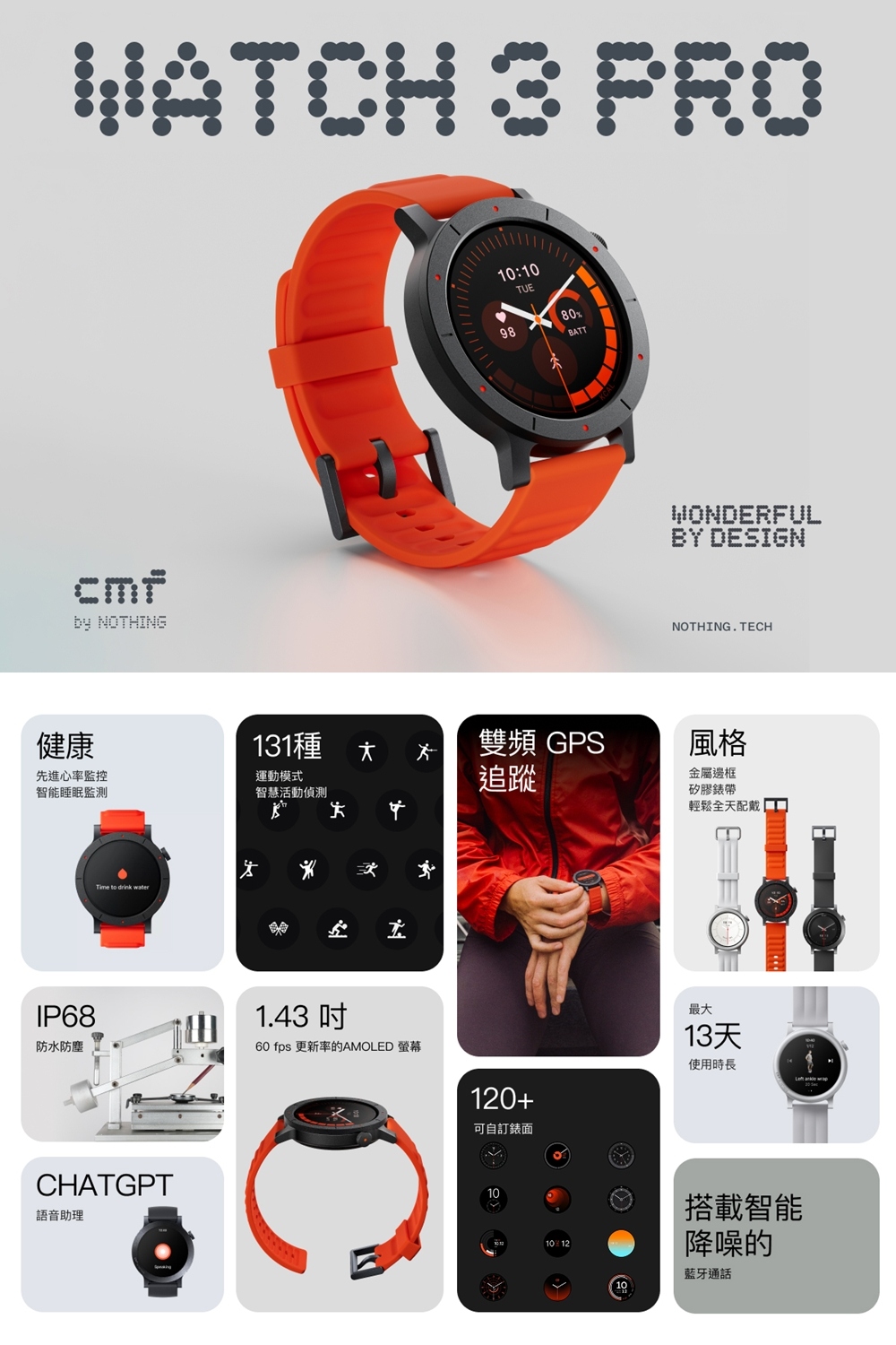 【Nothing】【CMF】Watch 3 Pro 第3代 穿戴式智慧型手錶 黑/銀/橘/湖水綠 公司貨