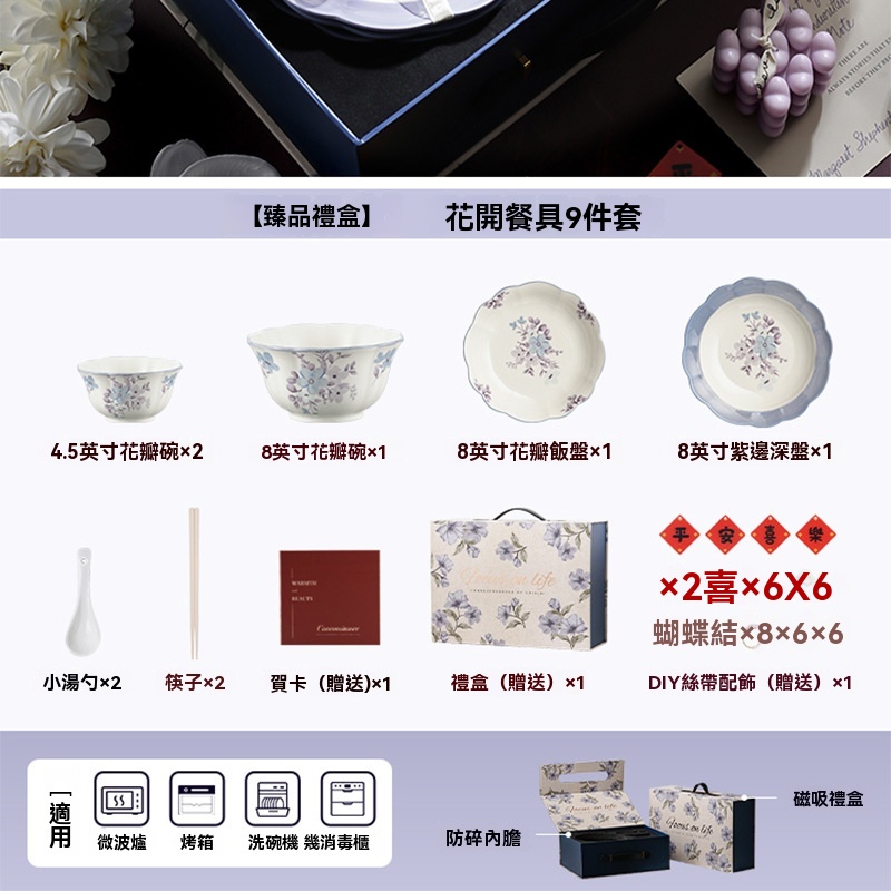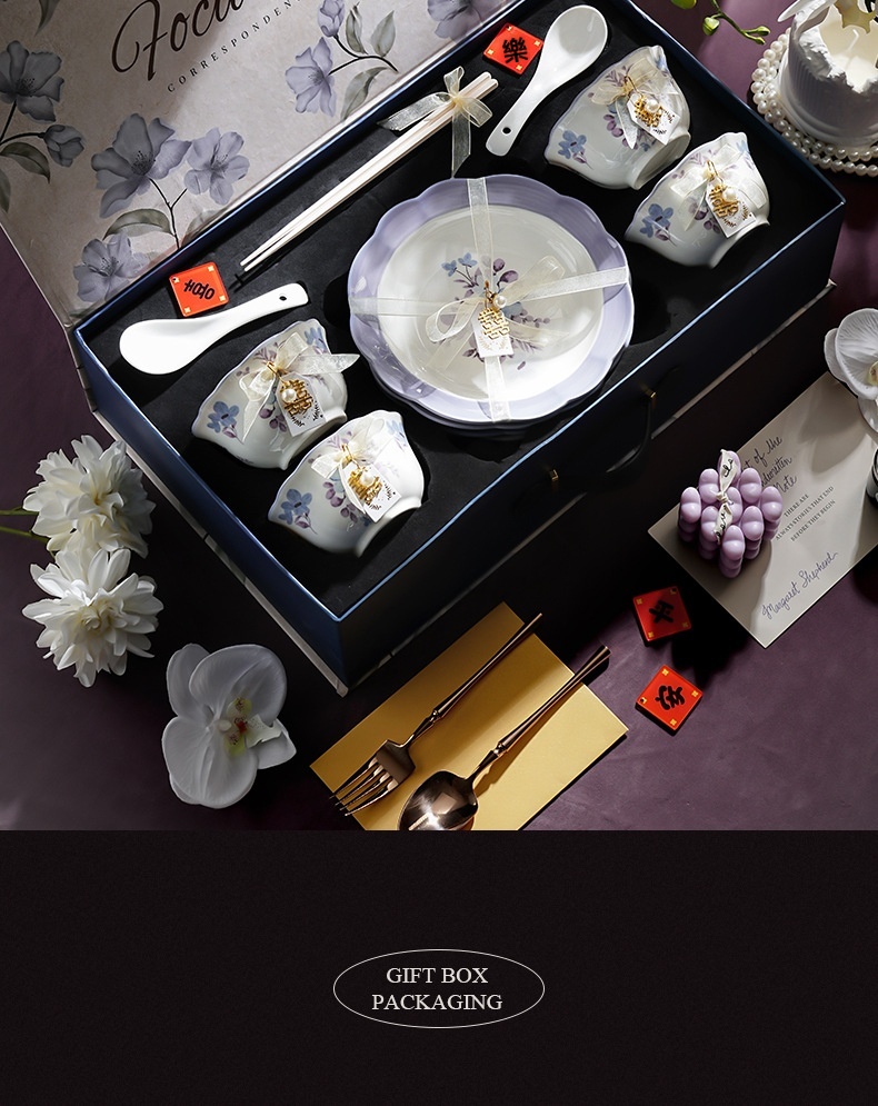 小慕KOGURE 花開陶瓷餐具 碗碟套裝 家用新家喬遷新居禮物 朋友搬家暖居高檔禮品