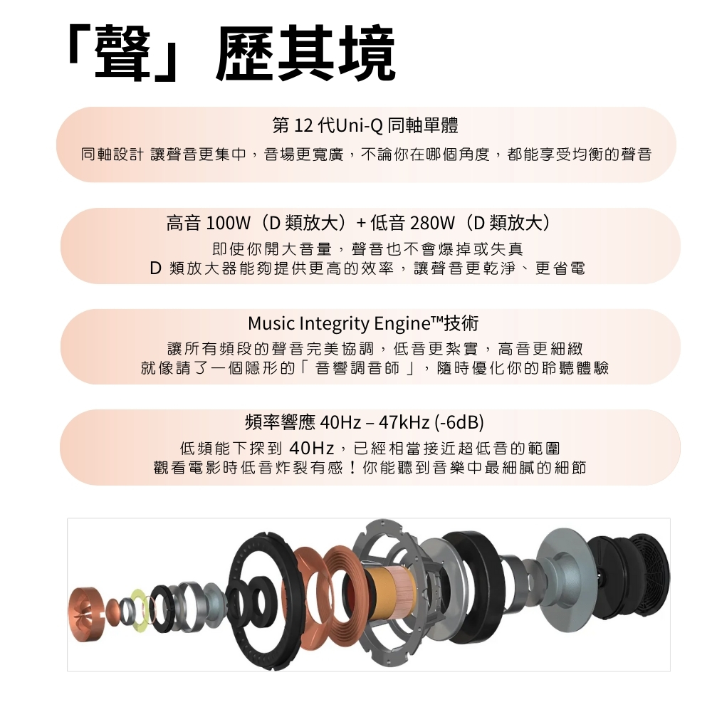 ■ KEF 專利 Uni-Q 技術,聲音均勻分布,增強臨場感