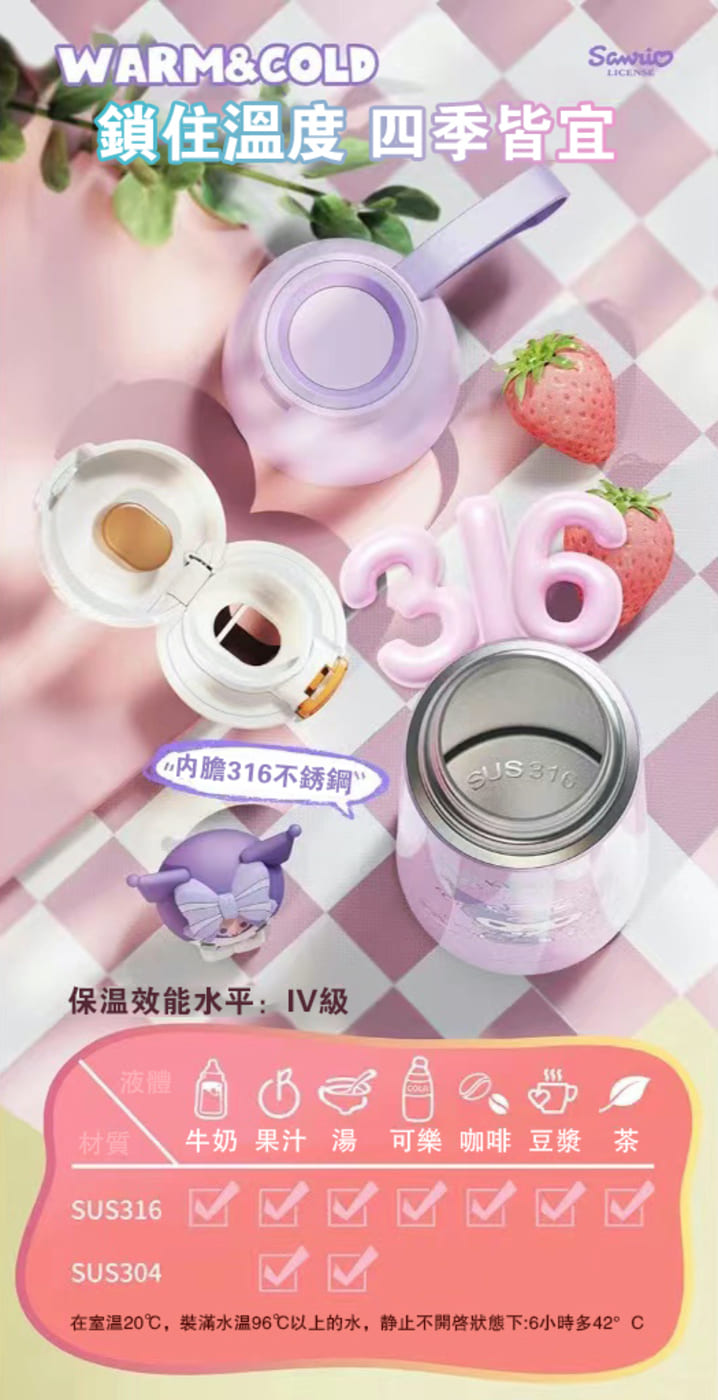 【SANRIO 三麗鷗】直飲樂遊保溫杯 316不鏽鋼 真空保溫罐 保溫杯 隨身壺 運動水壺 兒童水壺 隨身水壺 隨身杯 送禮 生日禮物 46#5