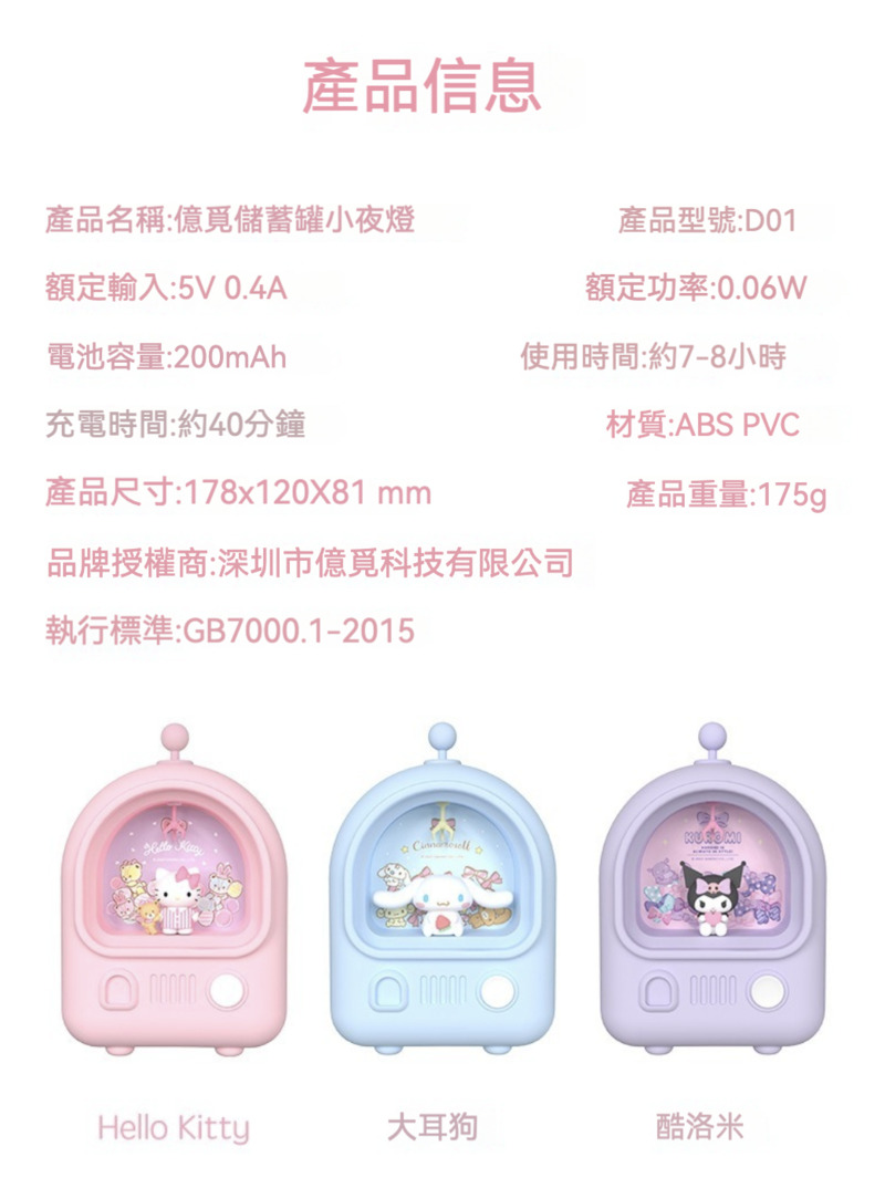 【SANRIO 三麗鷗】三麗鷗 小夜燈 存錢筒 庫洛米 Kitty 大耳狗 臥室 床頭 伴睡 夜燈 兒童 星願存錢罐 儲蓄 燈 禮物 送禮 生日