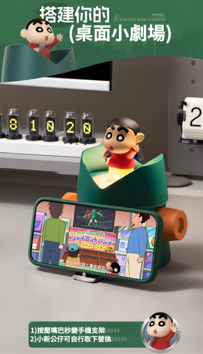 【Hello 蠟筆小新】康達姆機器人 小夜燈 拍拍燈 床頭燈 床頭小夜燈 解壓 公仔 擺件 玩具 手機支架 兒童 臥室裝飾 送禮 生日 禮物