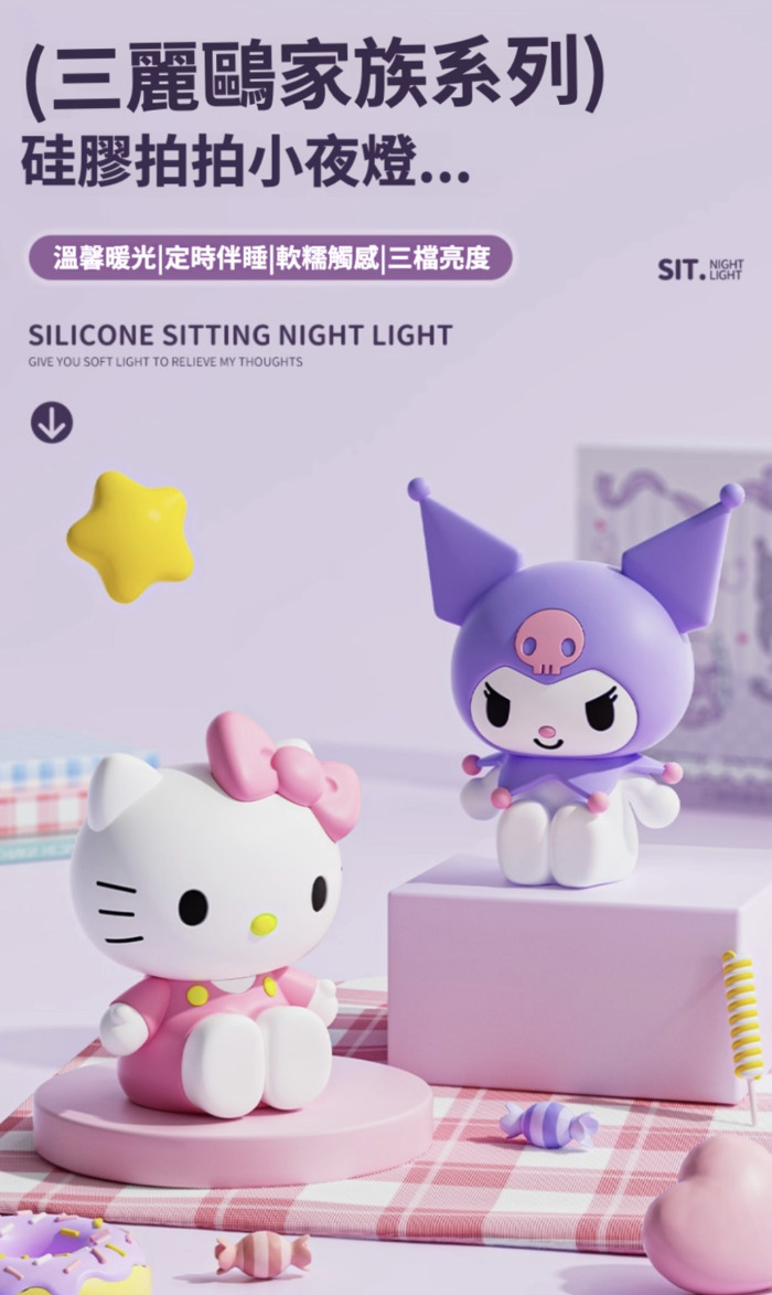 【SANRIO 三麗鷗】家族系列 小夜燈 床頭小夜燈 庫洛米 凱蒂貓 拍拍燈 捏捏燈 解壓 手辦 公仔 擺件 玩具 兒童夜燈 送禮 生日 禮物