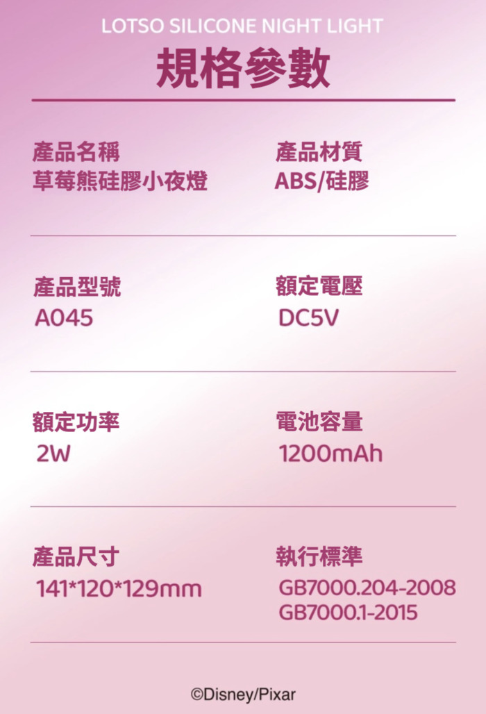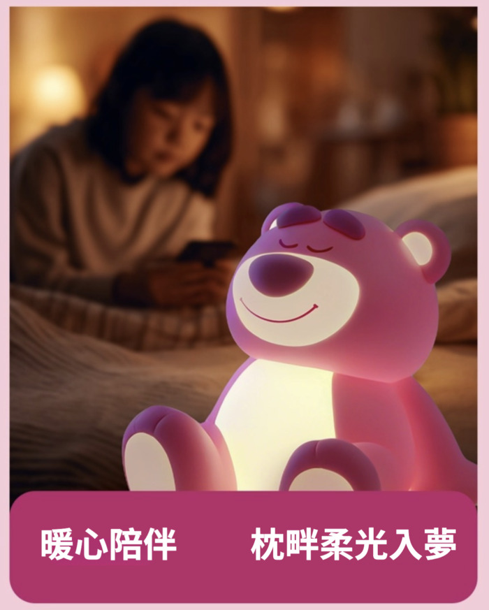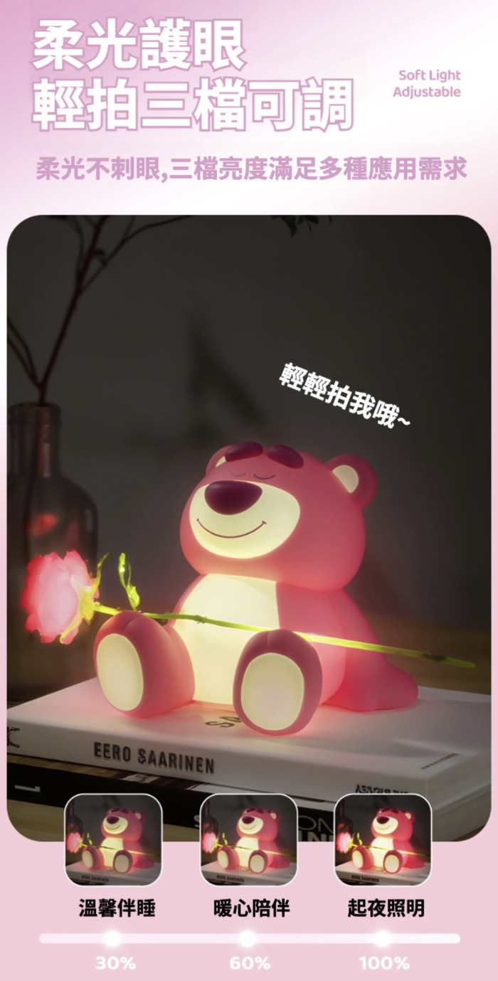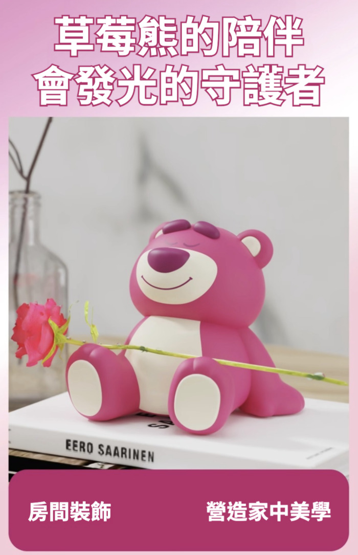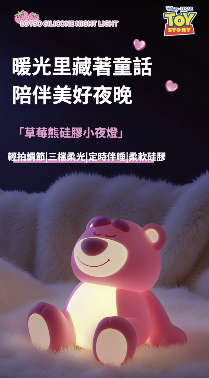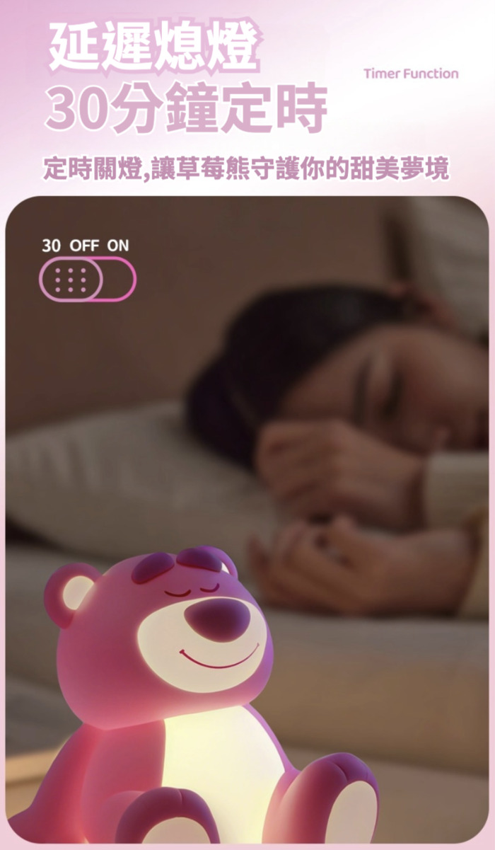【Disney 迪士尼】草莓熊 小夜燈 床頭小夜燈 小夜燈 燈 燈光 解壓 手辦 公仔 擺件 兒童夜燈 臥室裝飾 送禮 生日 禮物 交換