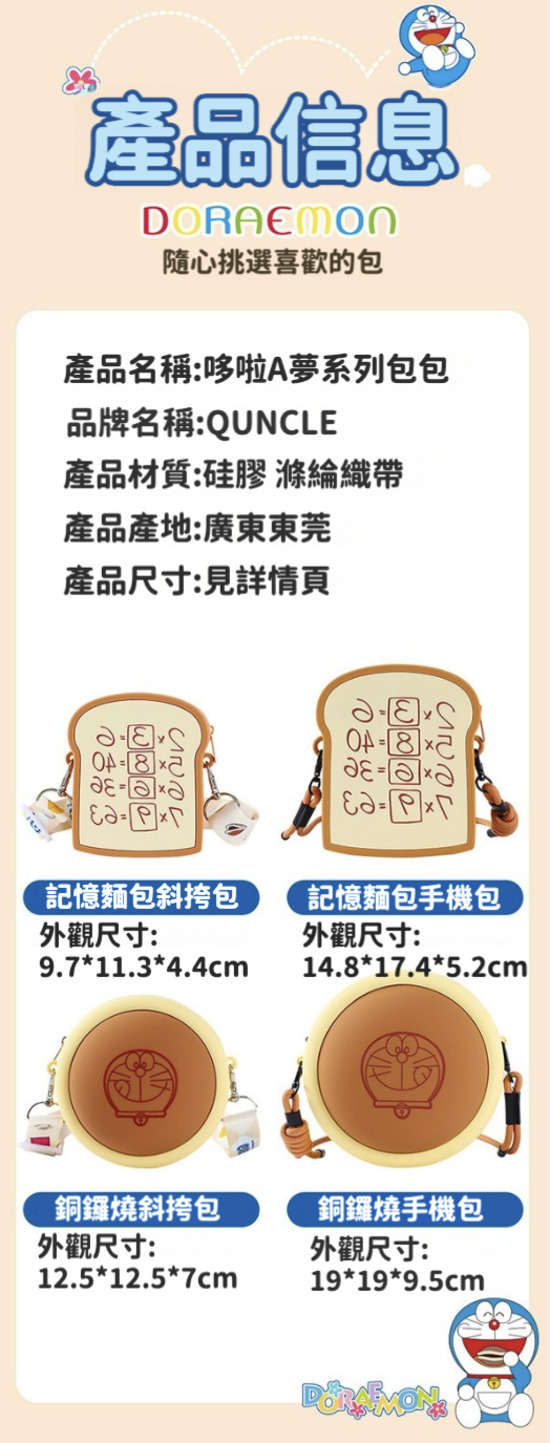 【Doraemon 哆啦A夢】銅鑼燒 記憶吐司 零錢包 矽膠 手機包 卡通 零錢 鑰匙 收納包 掛飾 斜背包 斜跨包 耳機包 包包 生日 禮物 送禮