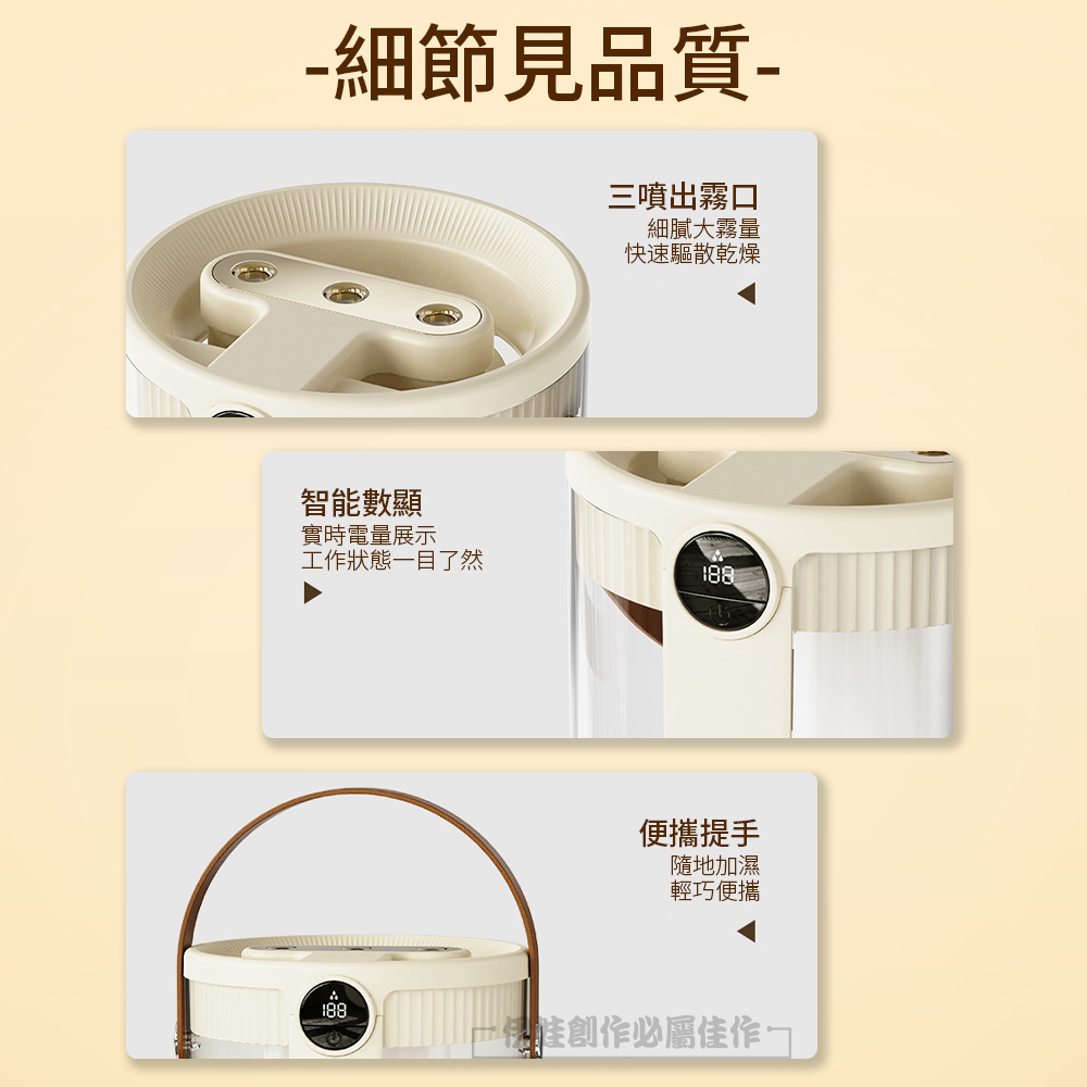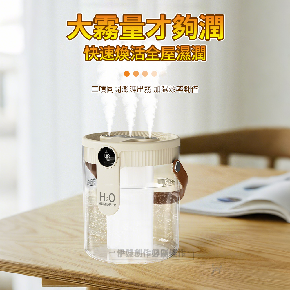 智能三噴加濕器 1500ML 數顯濕度 納米霧化水氧機 空氣清淨機(靜音加濕機 噴霧器)