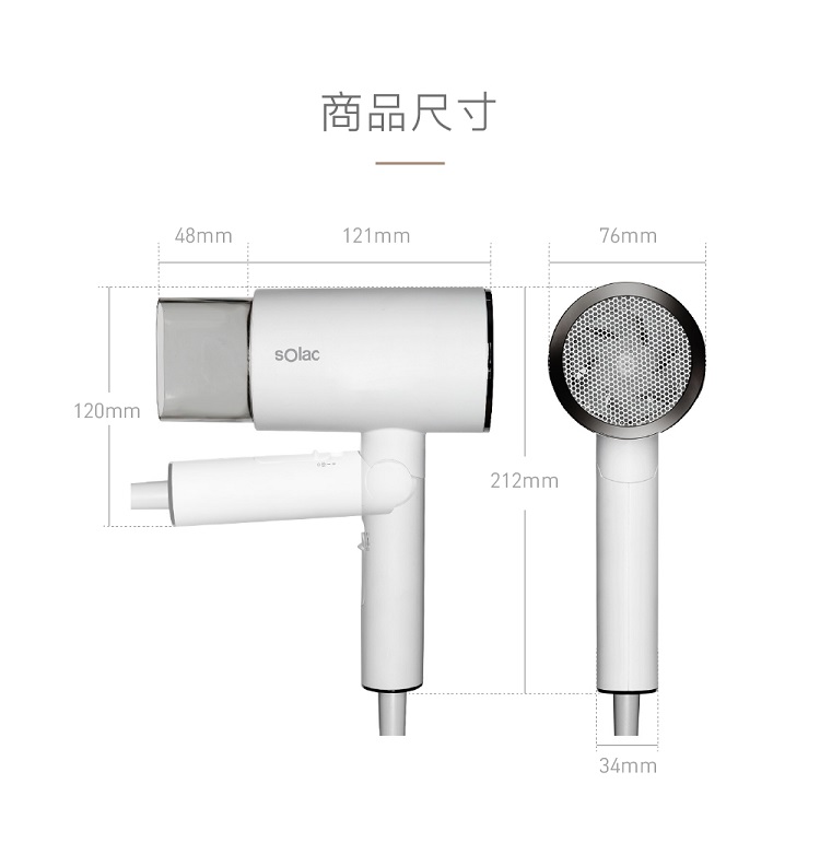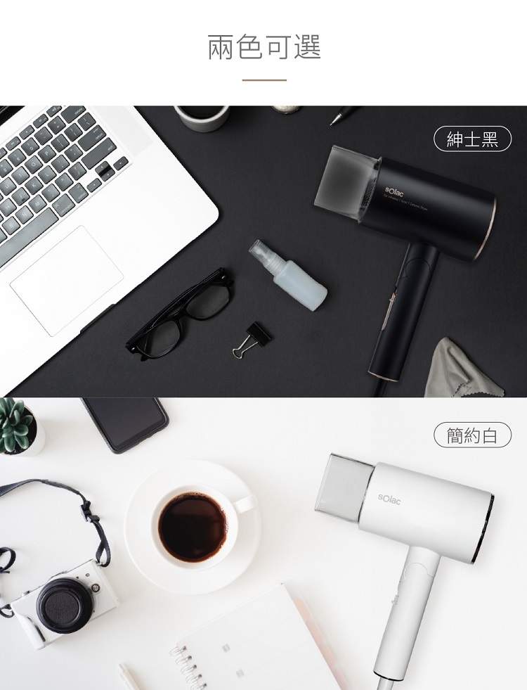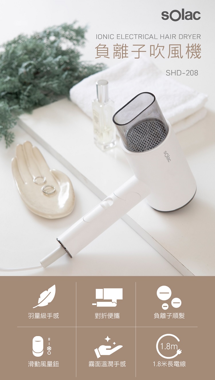 【SOLAC】輕巧大風量可折疉負離子吹風機 SHD-208 兩色可選 SHD-208W/SHD-208B