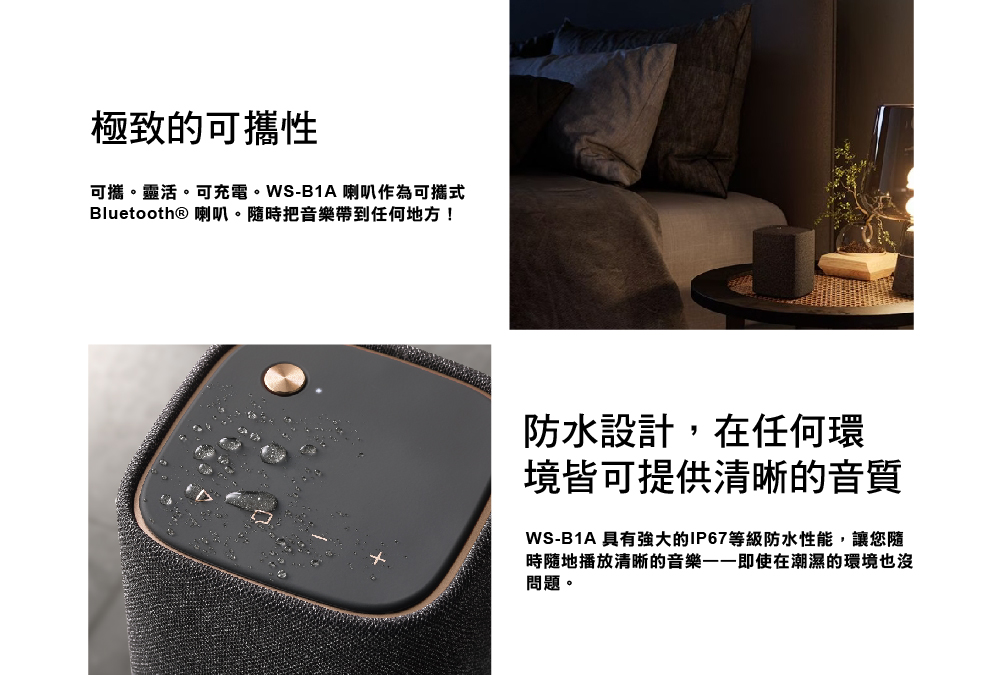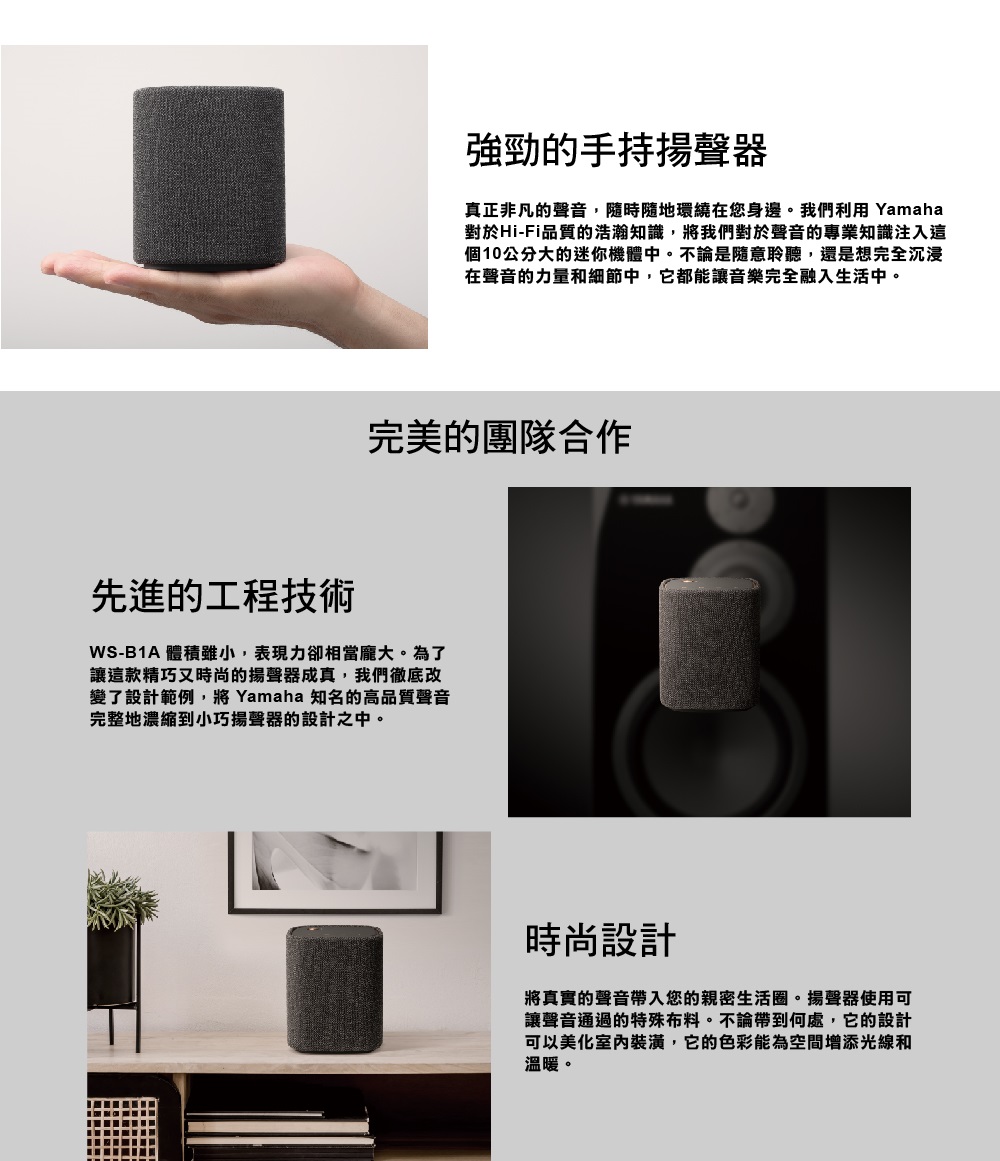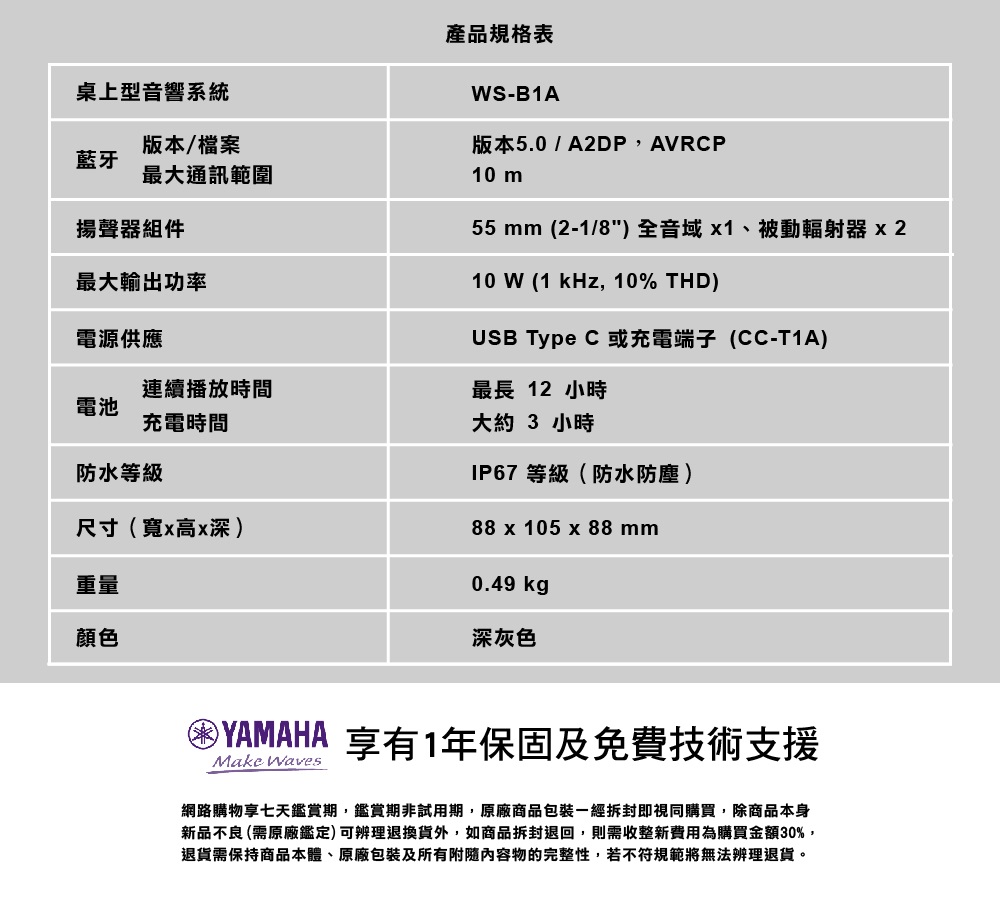 【YAMAHA 山葉】高續航長效充電型HIFI便攜式藍牙喇叭 WS-B1A 藍芽音響 IP67等級防潑水手持式揚聲器