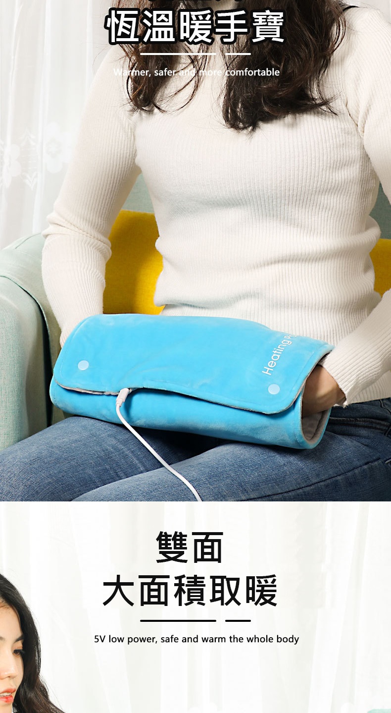 ◆暗扣設計一毯多用,扣起是暖手套,打開秒變熱敷墊