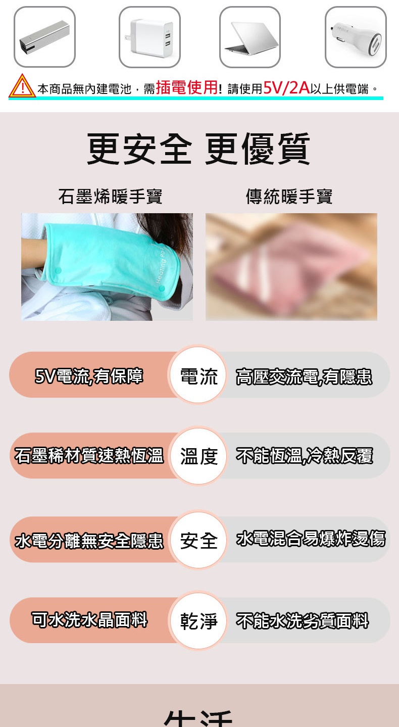 3.請務必使用5V/2A的供電端,不足功率會導致商品無法正常加熱。發熱效果會因環境溫度濕度等而有所差異。
