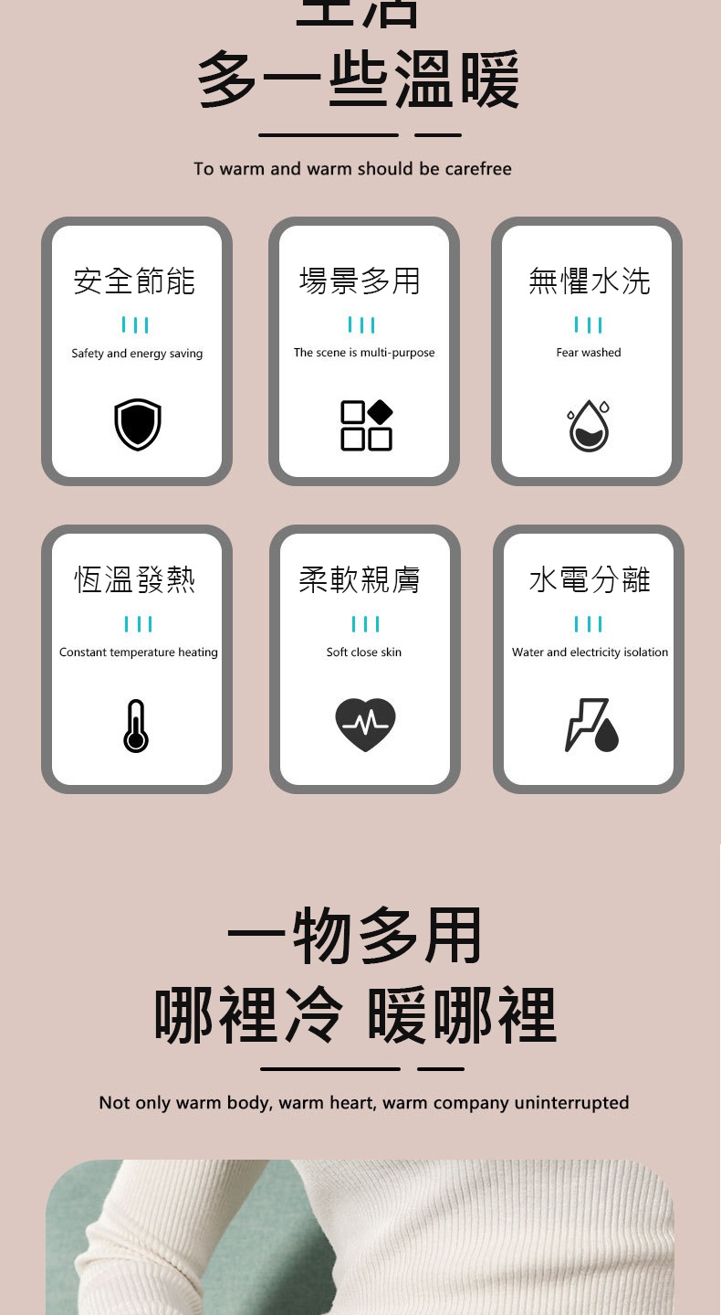 2.本商品為單面內層發熱。避免高強度加熱導致低溫燙傷產生,建議單次使用最高檔不超過30分鐘。