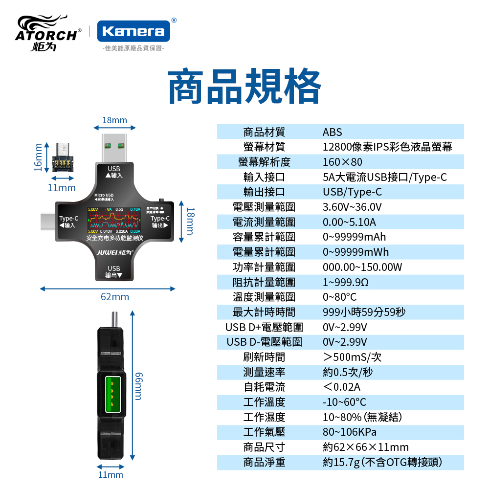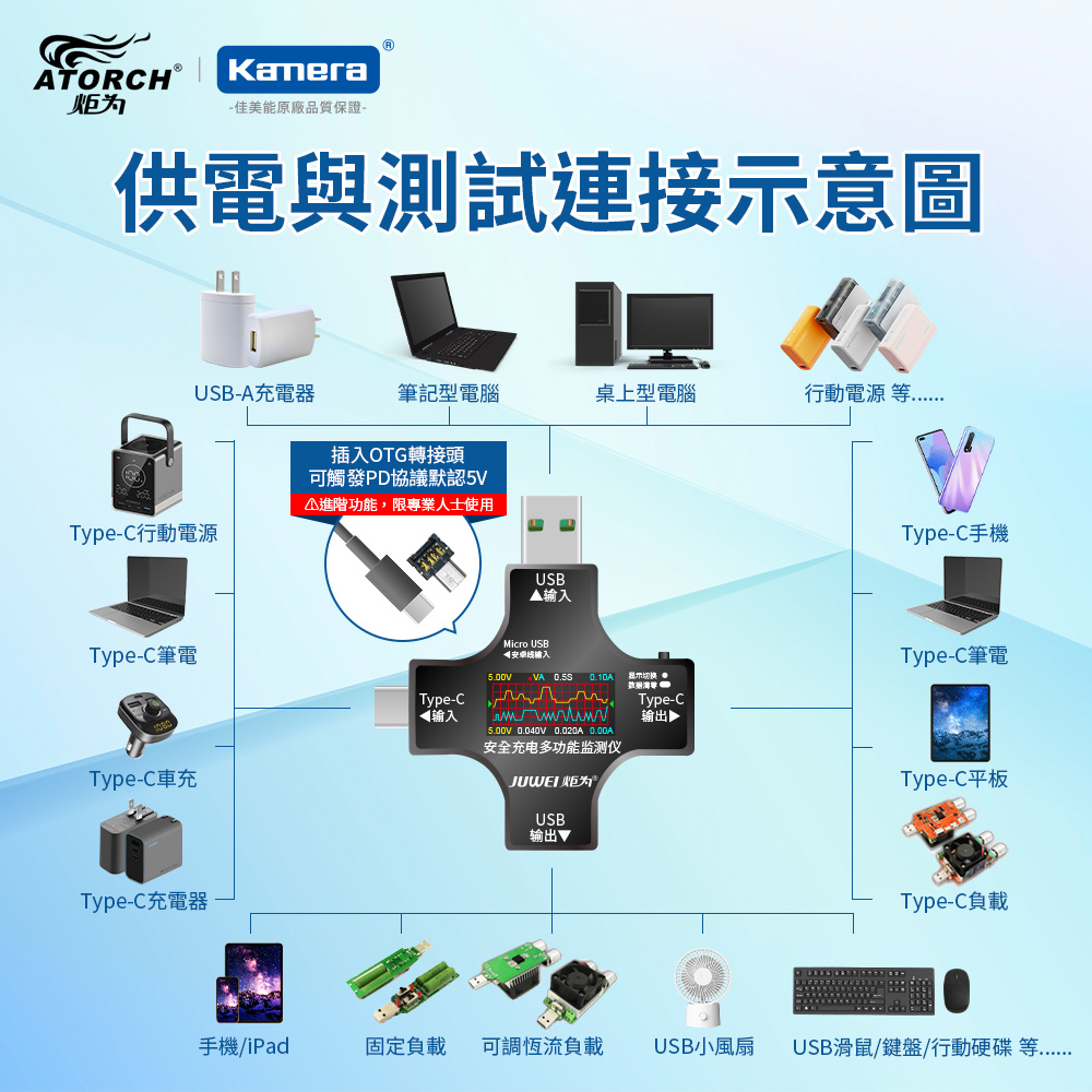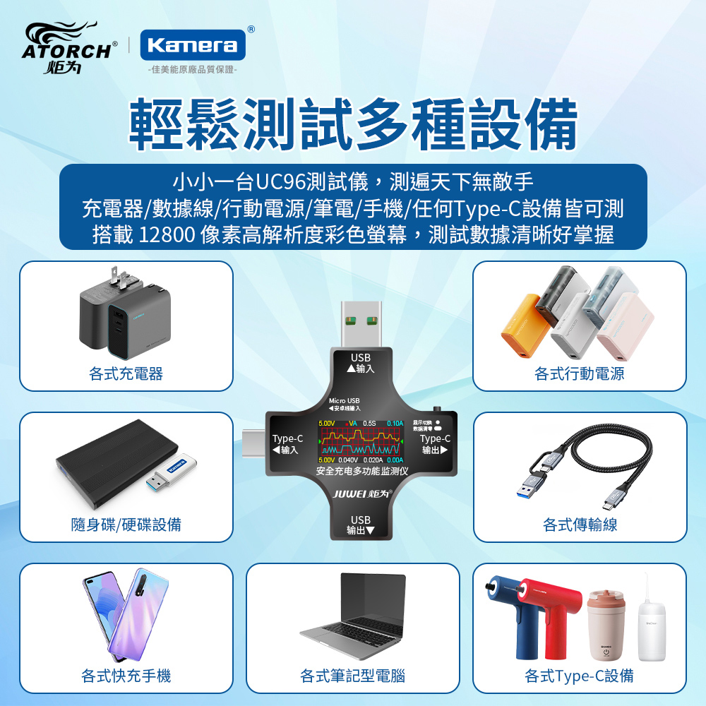 ➤ 支援充電器、數據線、行動電源、筆記本、手機及 Type-C 設備,輕鬆測試你的 3C 好物!