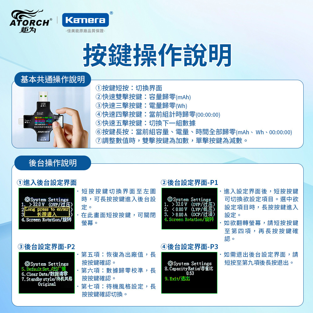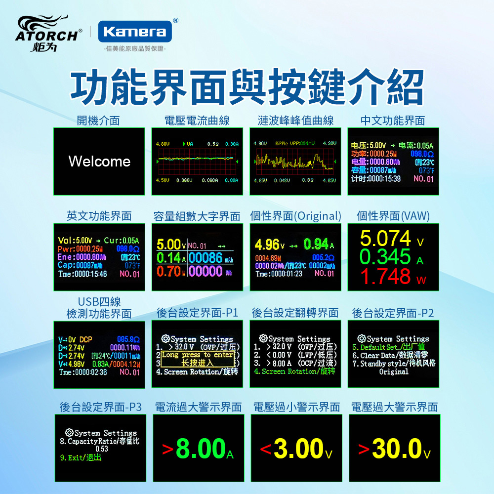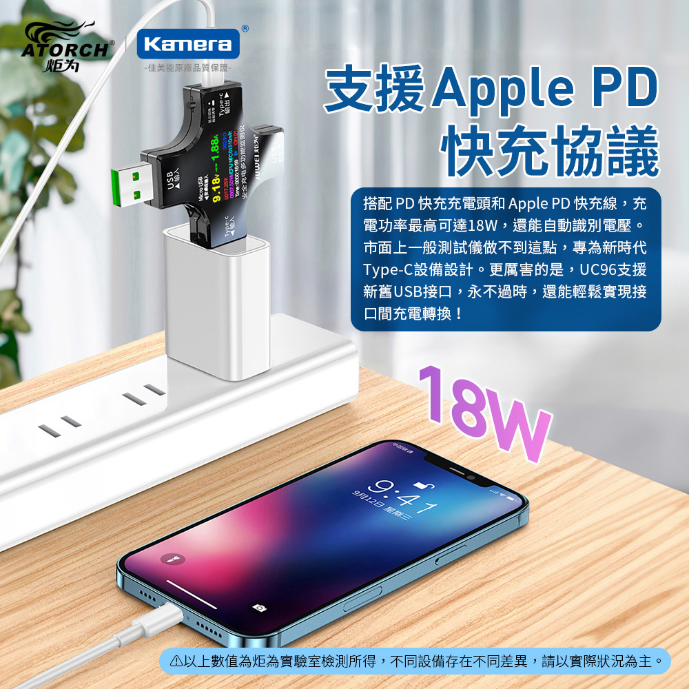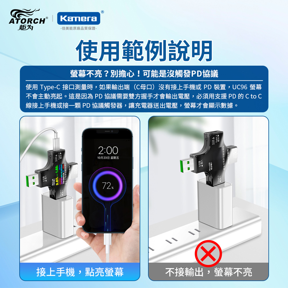 ATORCH 炬為 電壓電流功率 測試儀 PD快充 十字型 充電監測 充電器檢測儀 支援多種協議 彩色螢幕 (UC96)