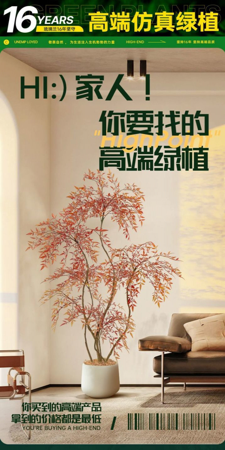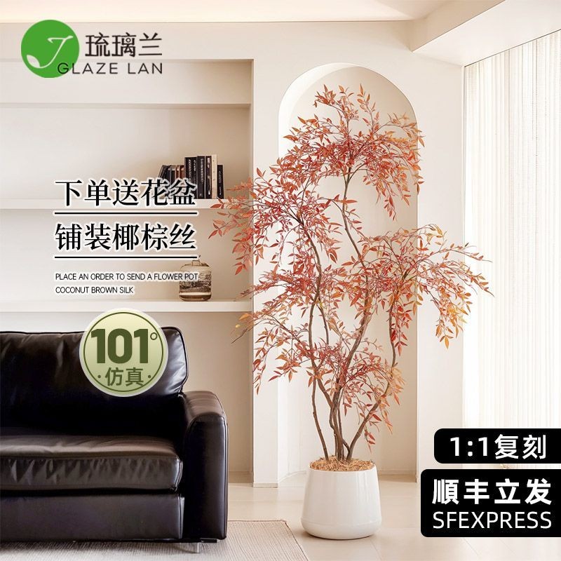 仿真綠植南天竹落地盆栽室內大型仿生植物客廳裝飾 假植物落地擺件居傢裝飾 仿真植物 綠植盆栽人造植 假樹