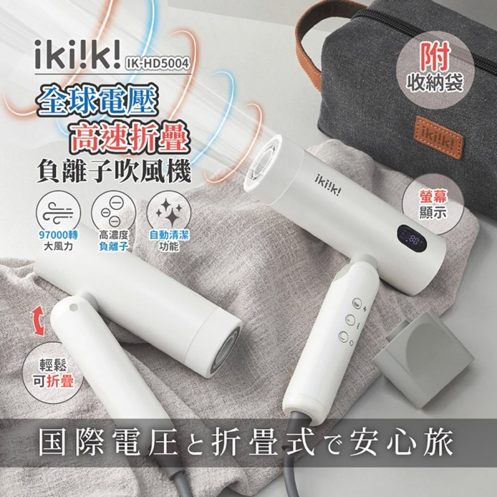 【ikiiki 伊崎】負離子吹風機 雙電壓 吹風機 折疊吹風機 大風量吹風機 IK-HD5004 (速達)