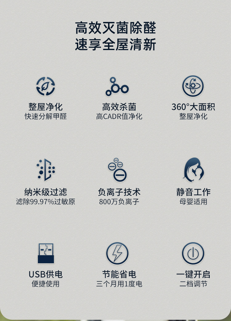 負離子空氣凈化器 除濕機 空氣清淨機 除煙霧異味 除臭機 節能省電 多重過濾 靜音降噪 一鍵啟動 專業高效 強勁吸力