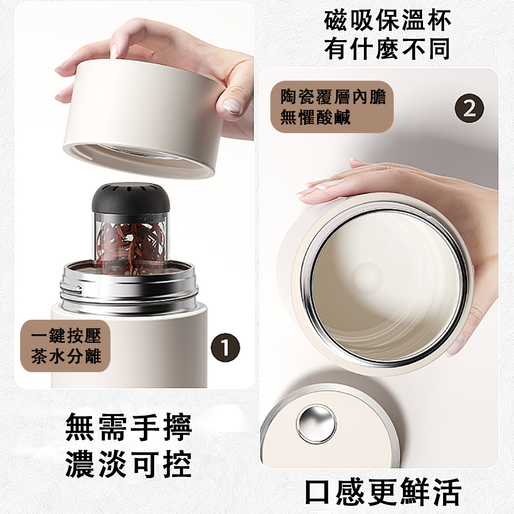 台灣現貨 磁吸茶杯 陶瓷保溫瓶 陶瓷保溫杯 冰霸杯 咖啡杯 隨行杯 一鍵按壓 生日禮物550ml