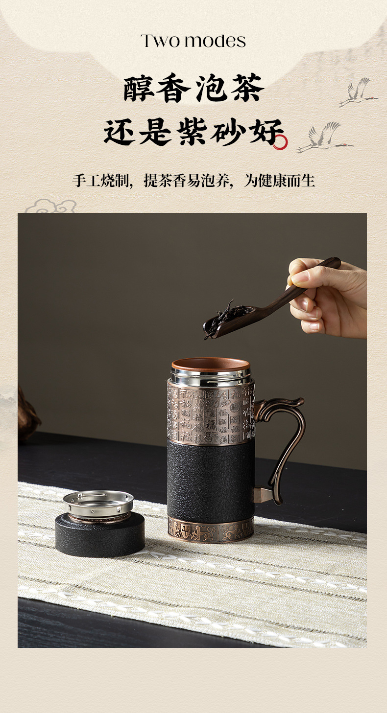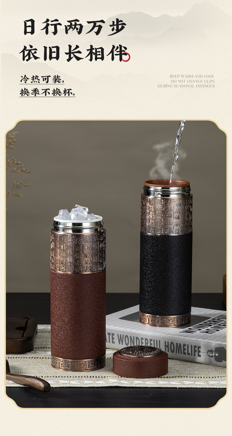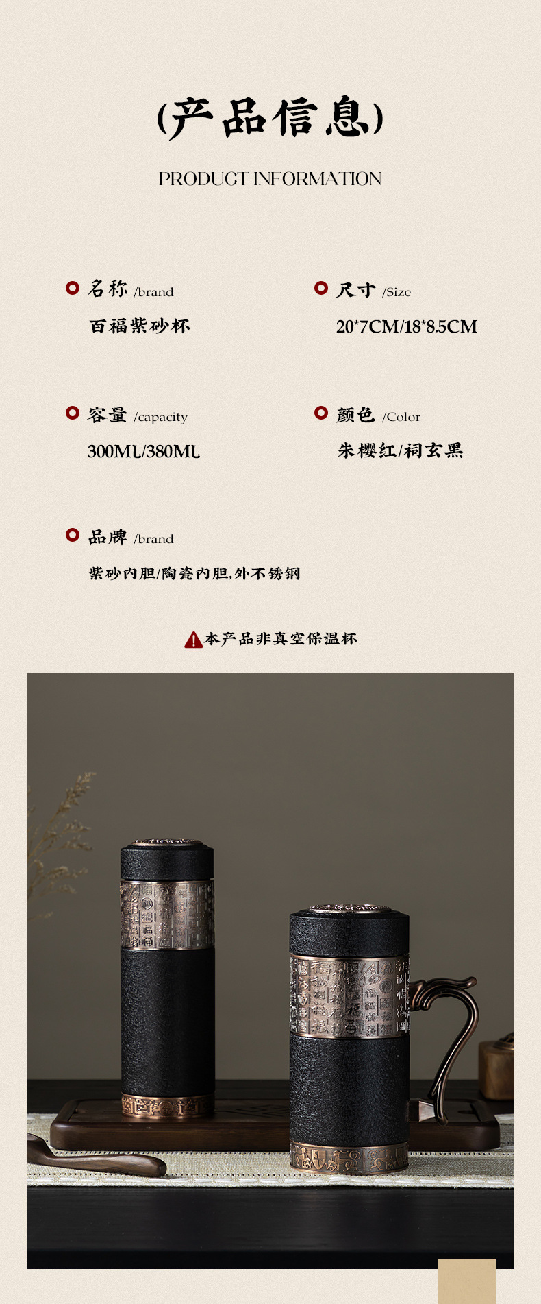 【百佳】茶杯 紫砂保溫杯 高檔男女士紫砂杯子 辦公商務紀念禮品 水杯 送長輩禮物 朋友禮物