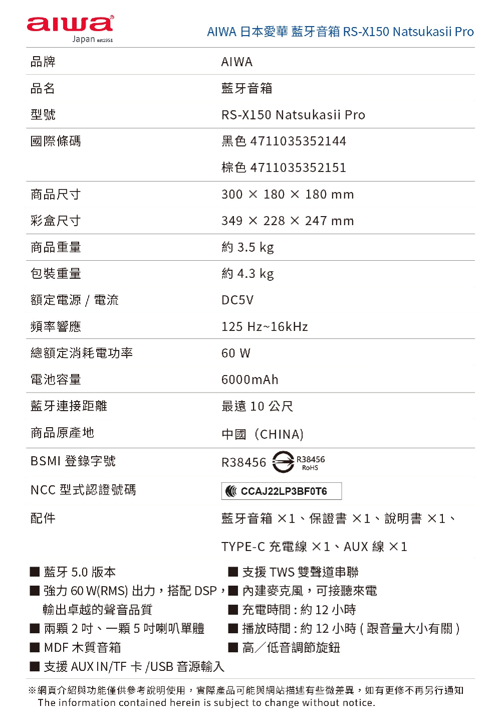 【AIWA】愛華 藍牙喇叭 (RS-X150 Natsukasii Pro)-棕色/黑色