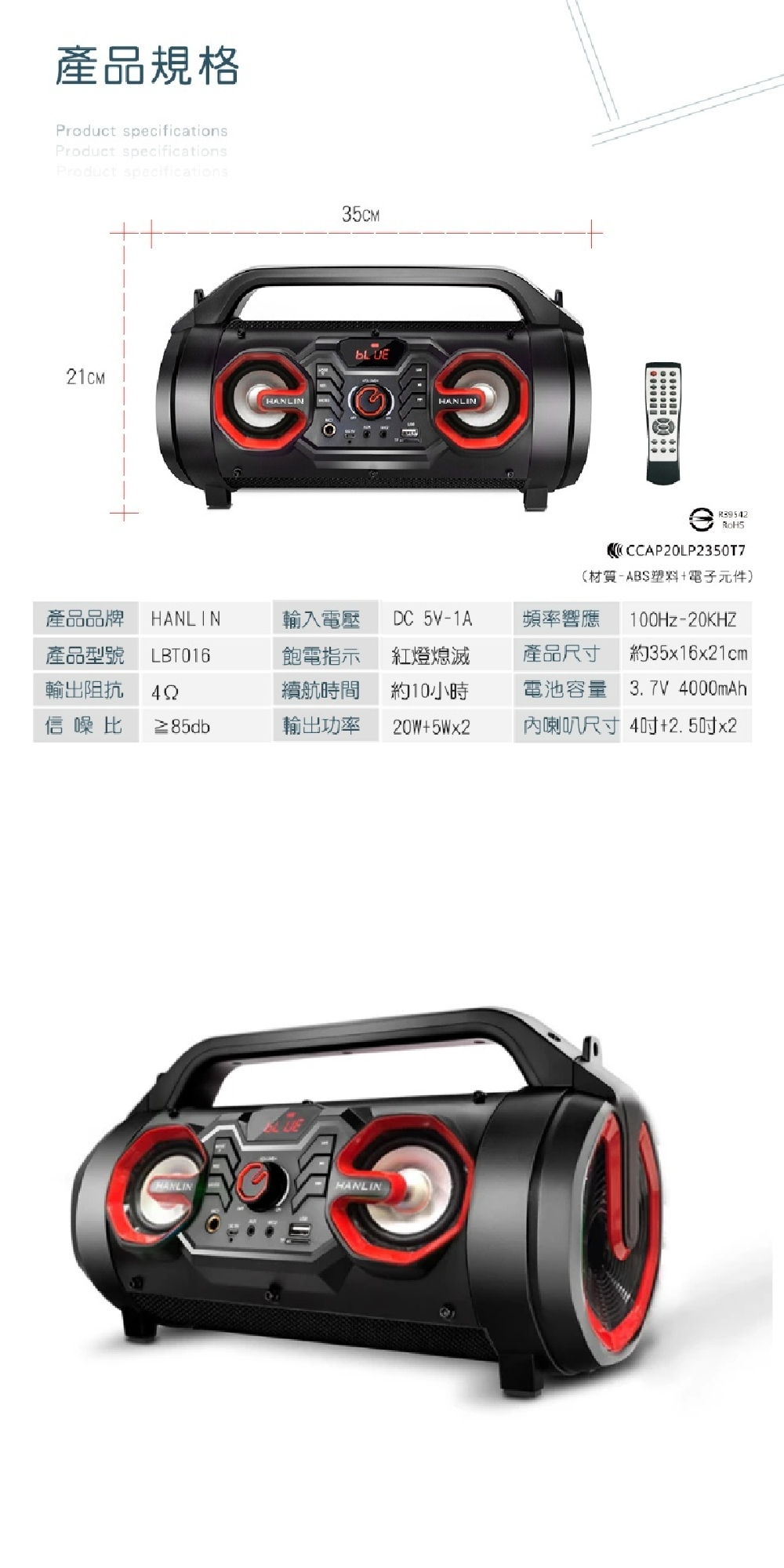 HANLIN-LBT016手提背藍牙擴音重砲喇叭