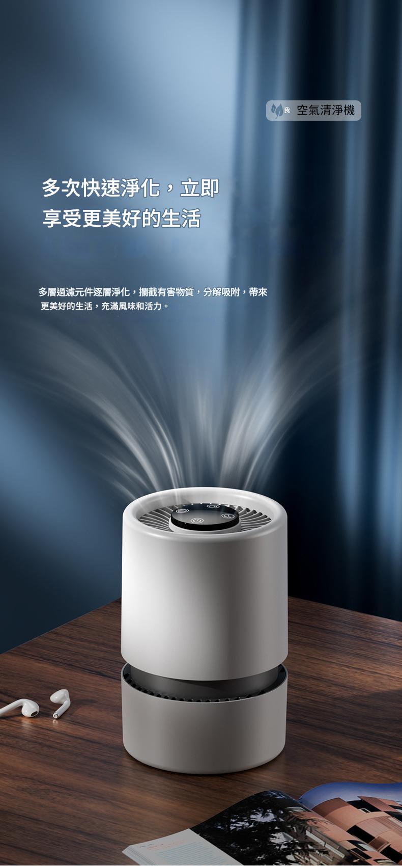 【EARISE 雅蘭仕】全屋空氣淨化器 負離子活性炭過濾 除臭除煙除灰塵 空氣清新 自然空氣 便攜式可拆卸濾芯 帶香薰 usbC供電
