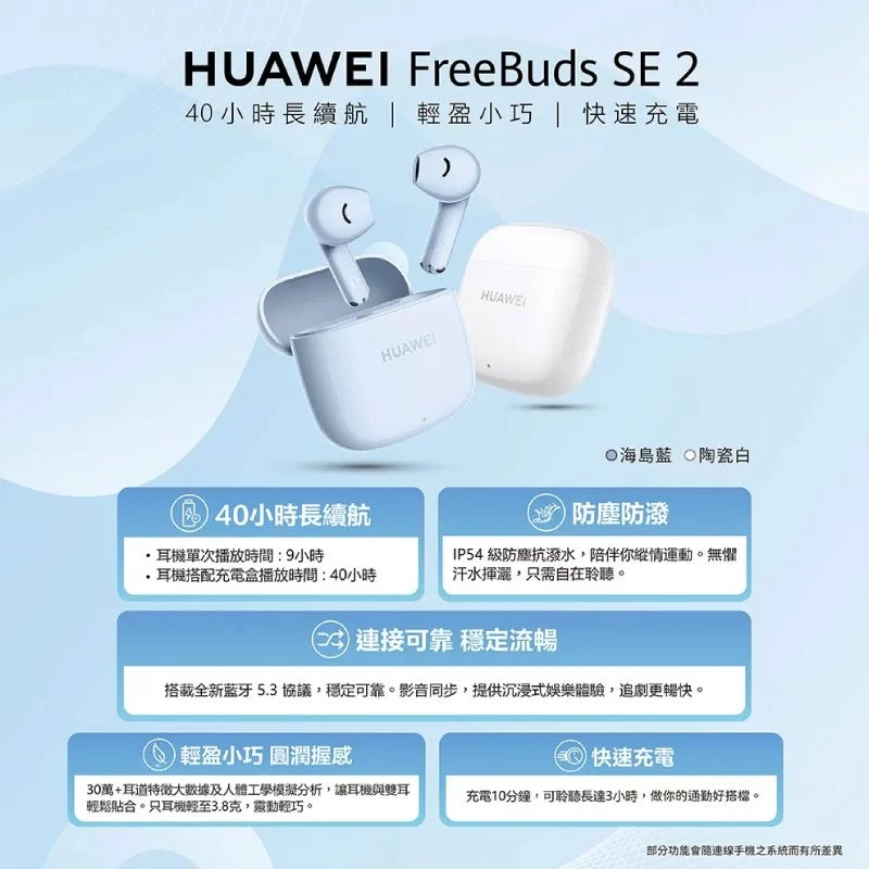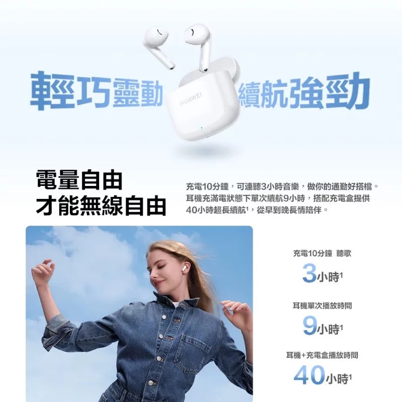 *數據來自華為實驗室,測試條件:常溫25℃。**續航數據來自華為實驗室,默認設置下,50% 音量、AAC 編碼格式,實際續航時間受音量、音源、環境干擾程度、產品功能、配套設備、系統、使用習慣等的影響。
