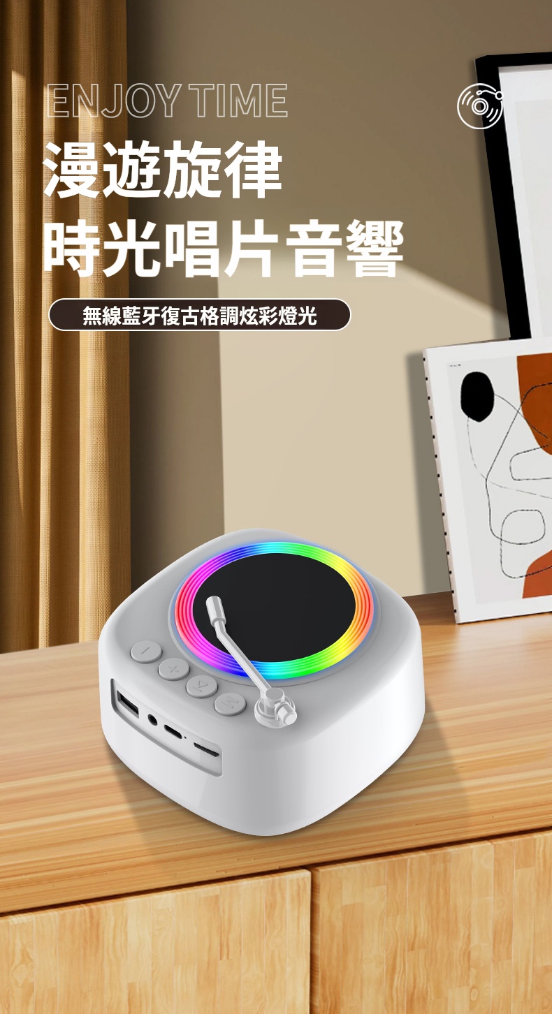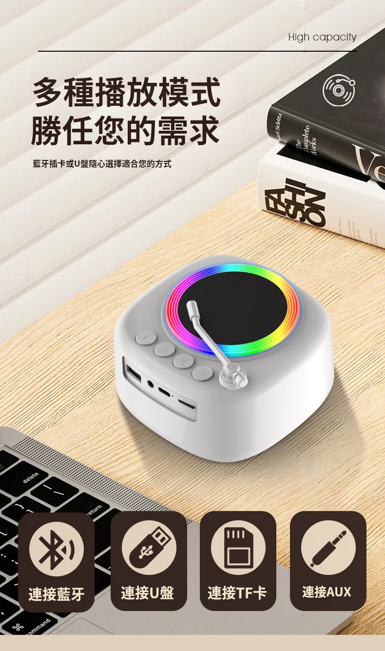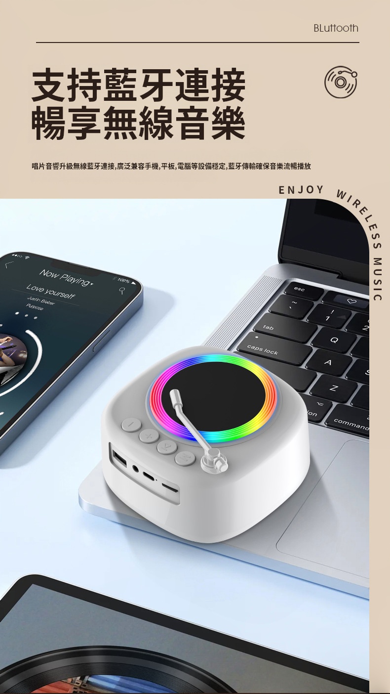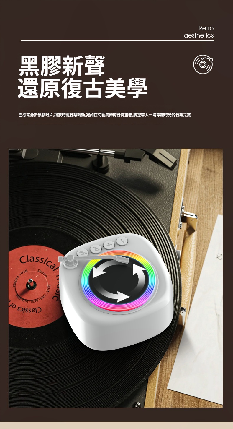 藍牙音響CD復古黑膠唱片藍牙音響創意小音響炫彩氛圍燈迷你小音響