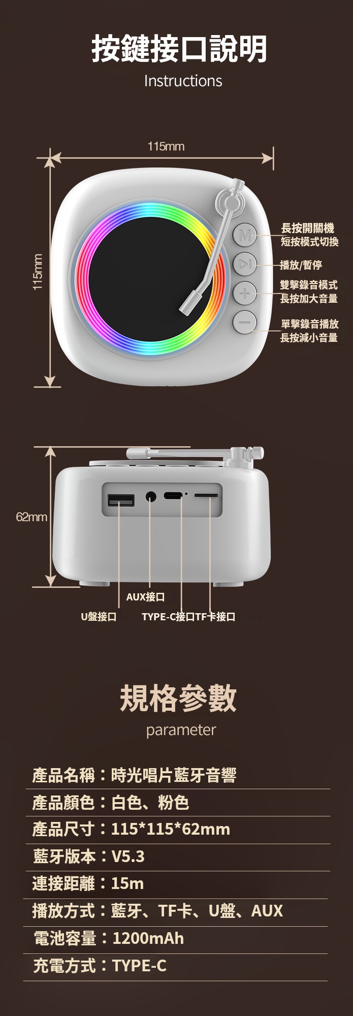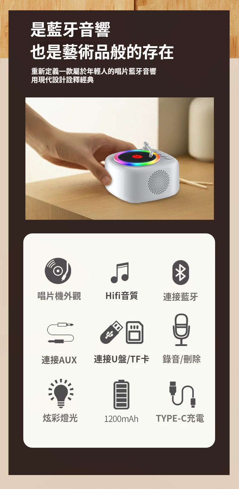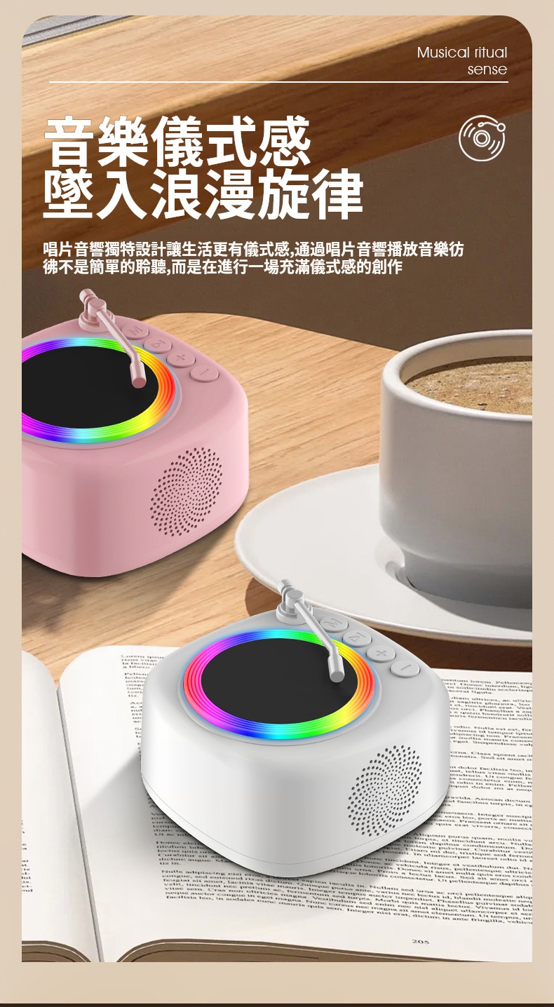 藍牙音響CD復古黑膠唱片藍牙音響創意小音響炫彩氛圍燈迷你小音響