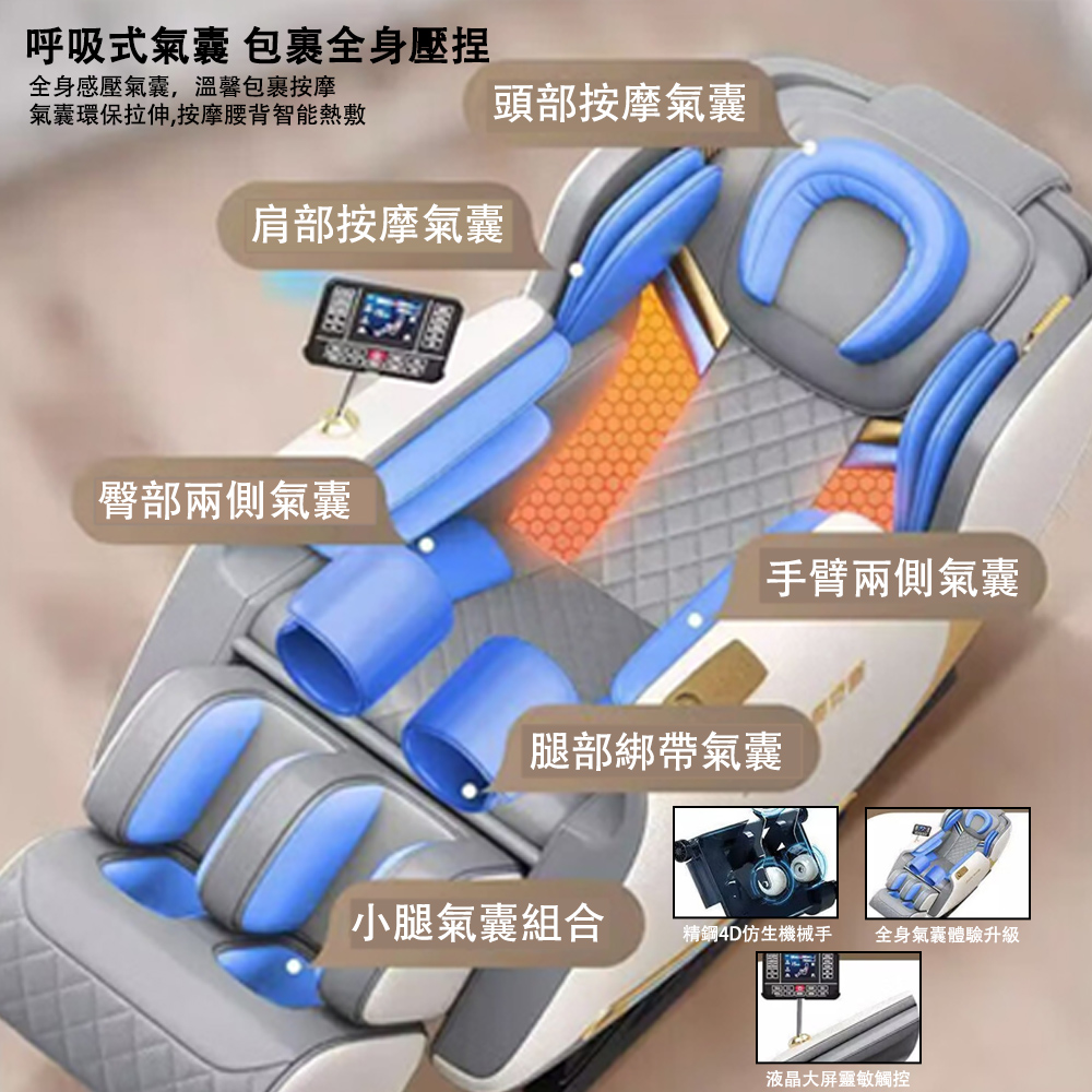 豪華全配4D智慧按摩椅|AI語音聲控|全身氣囊深層按摩