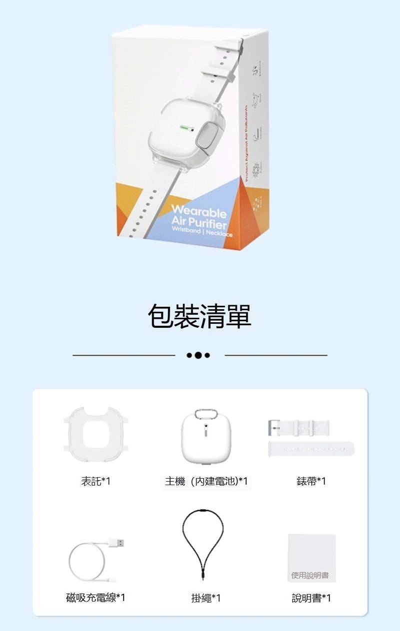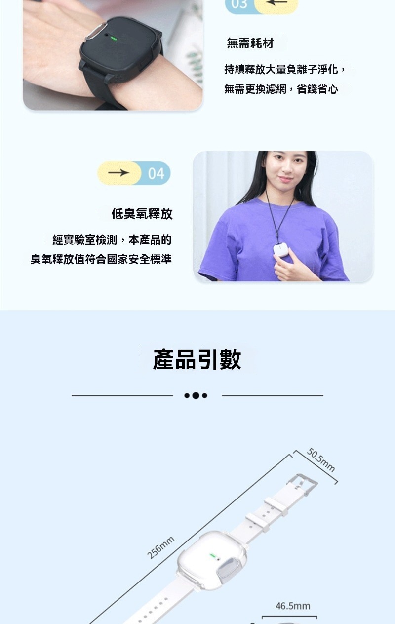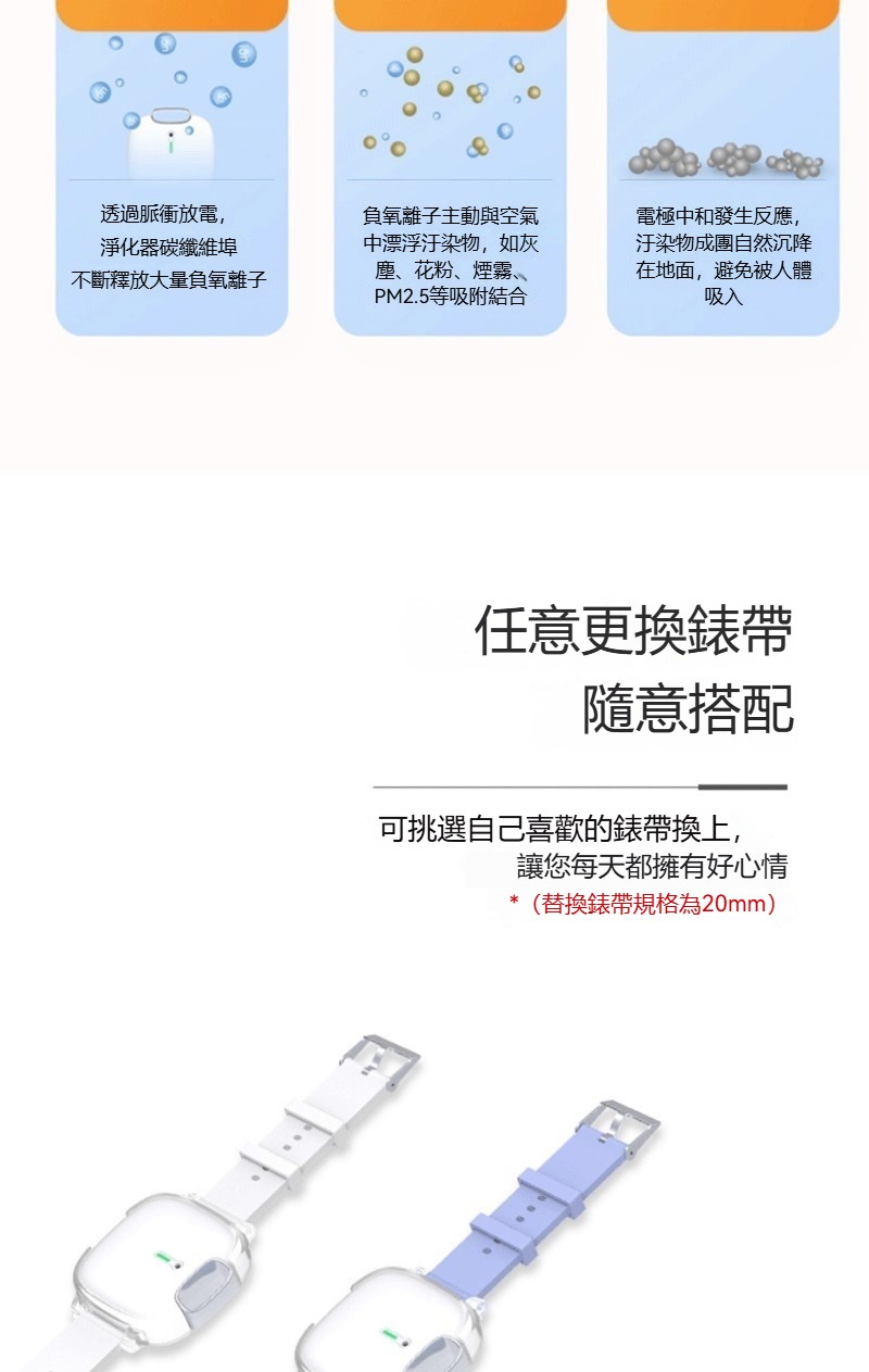 配戴手環空氣清淨機 手錶式 掛脖式 負離子 隨身攜帶 戶外清淨機 淨化器