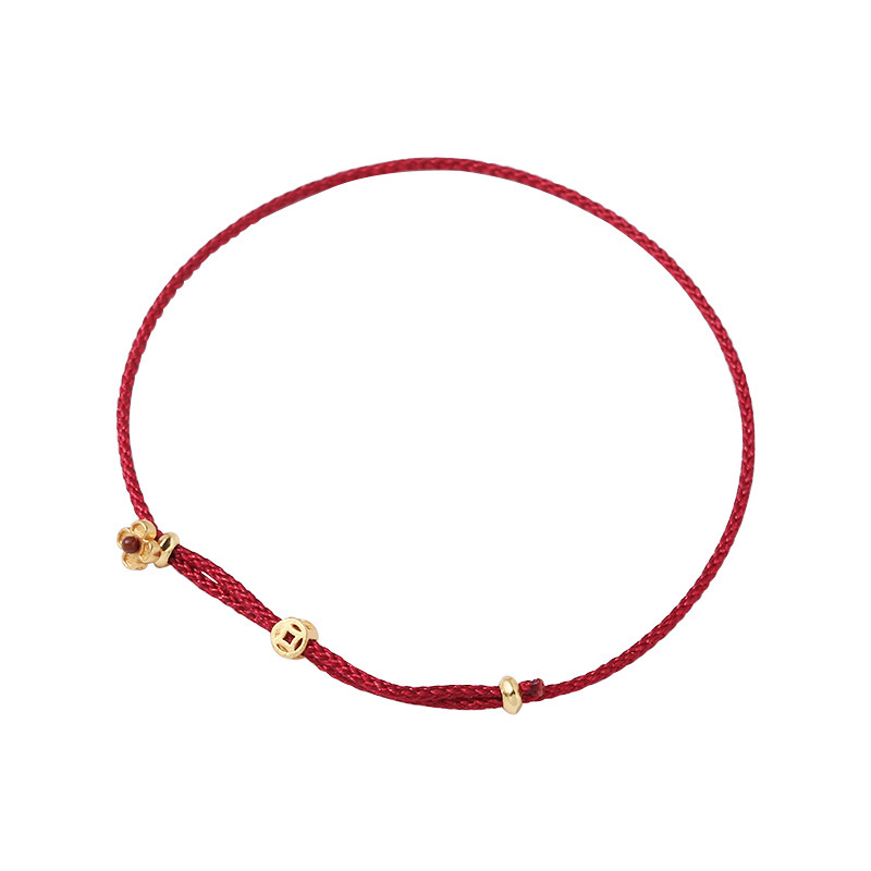 【開運堂】🔥紫南宮過爐2月16日🔥 有錢花手繩 銀鍍金有錢花手繩迷你小錢幣巨細紅繩個性顯白氣質時尚手鍊開運堂