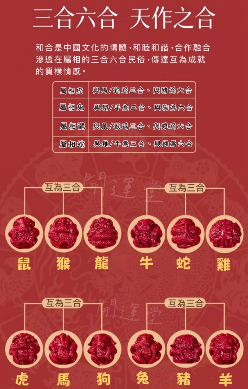 ✔️ 三合六合設計:平衡十二生肖間的能量關係,幫助事業、人際、感情更順遂