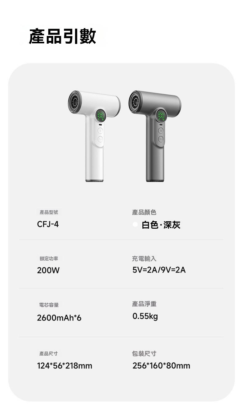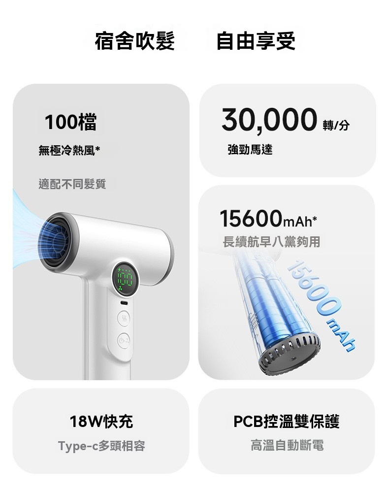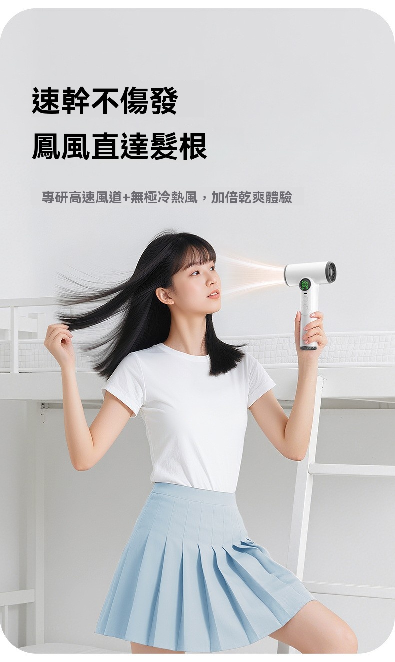 無線吹風機 USB充電式吹風筒 便攜式不插電學生宿舍用大風力吹熱風(無極冷熱風/長續航/智慧控溫)