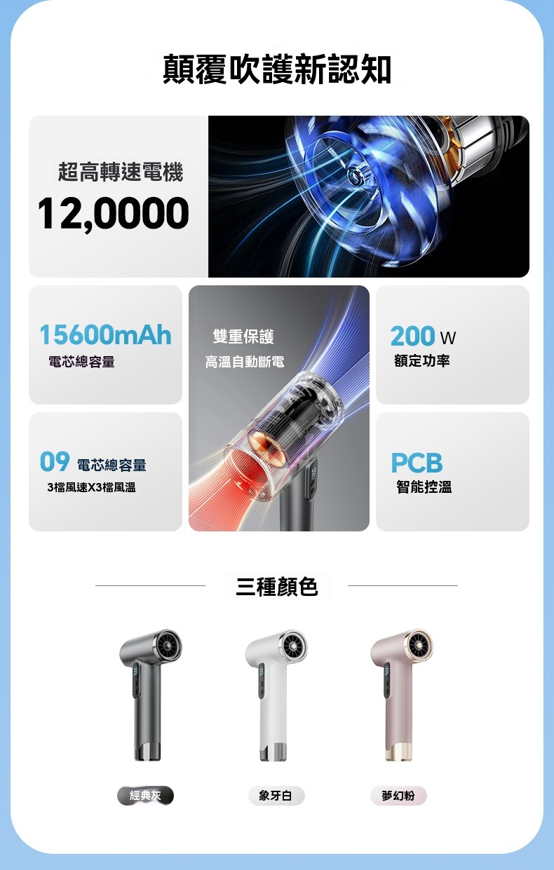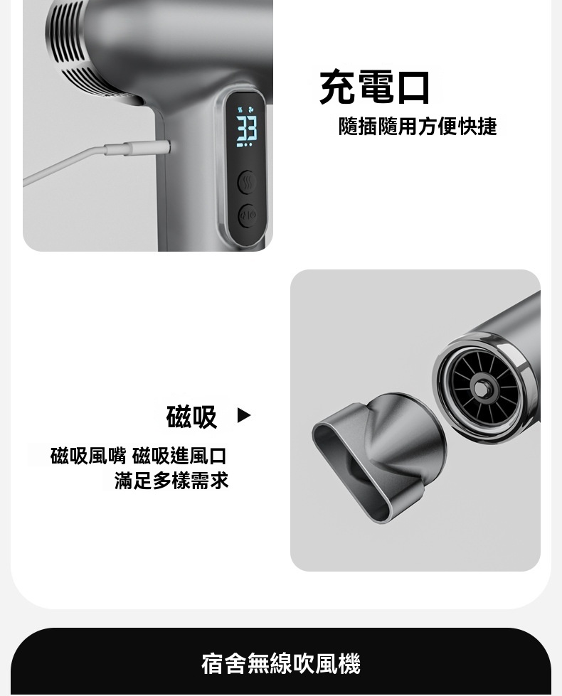 小型無線吹風機 家用吹風 宿舍吹風 三色可選(藍光/懶人吹風機/三檔風速/磁吸風嘴/)