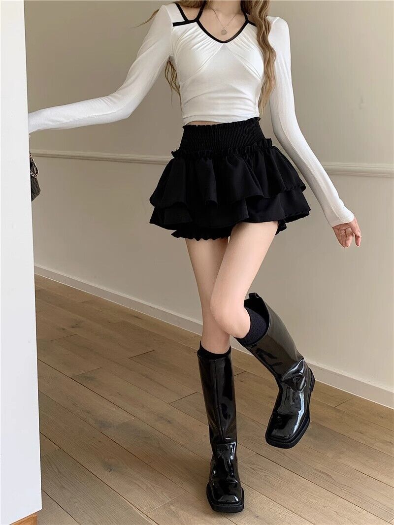 半身裙女短裙蓬蓬裙黑色褶皺半身裙女2025夏季新款芭蕾風蛋糕裙子高腰顯瘦a字裙防走光短褲裙洋裝裙子女約會生日氣質短裙女