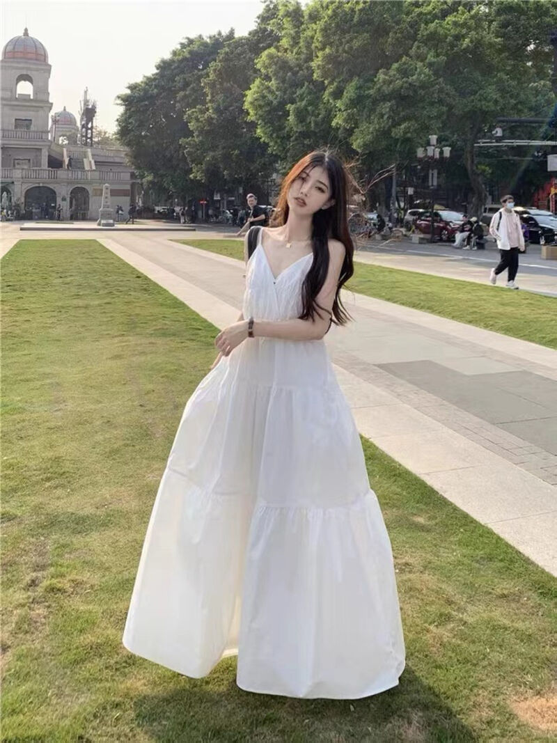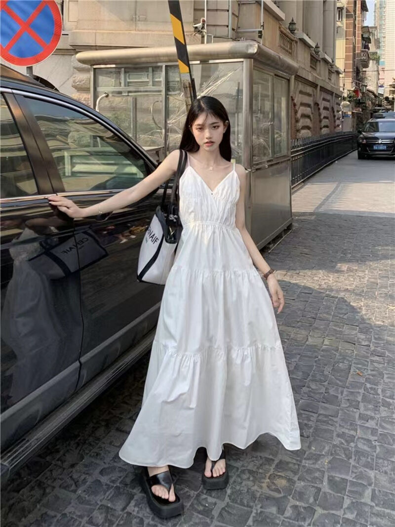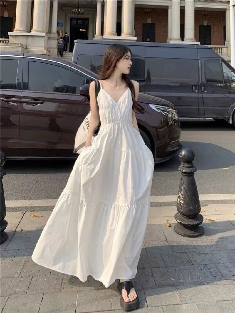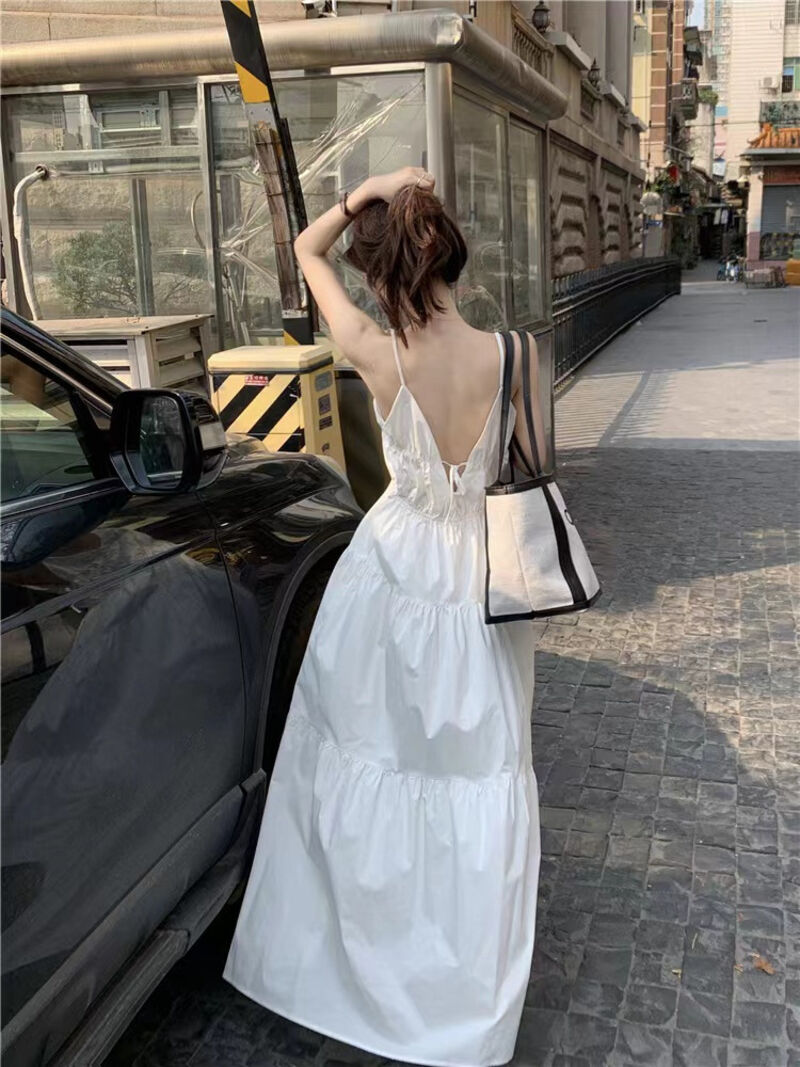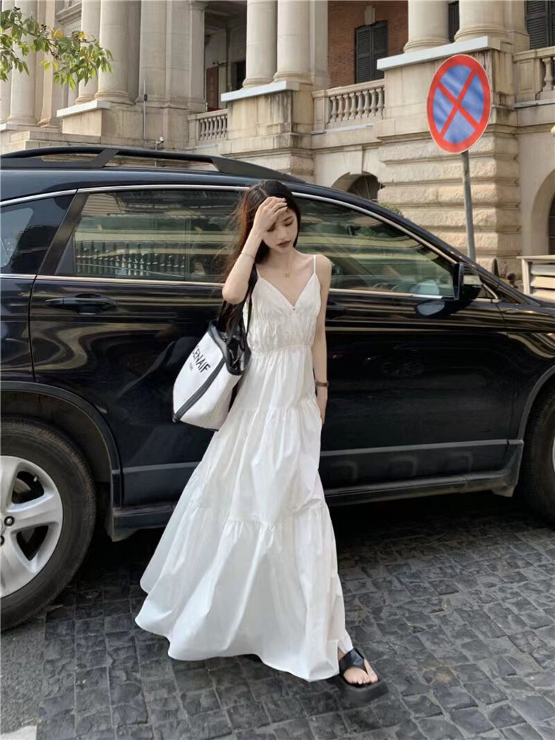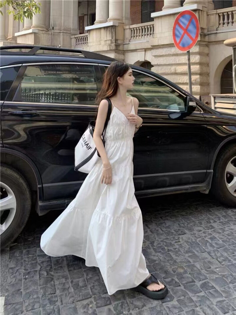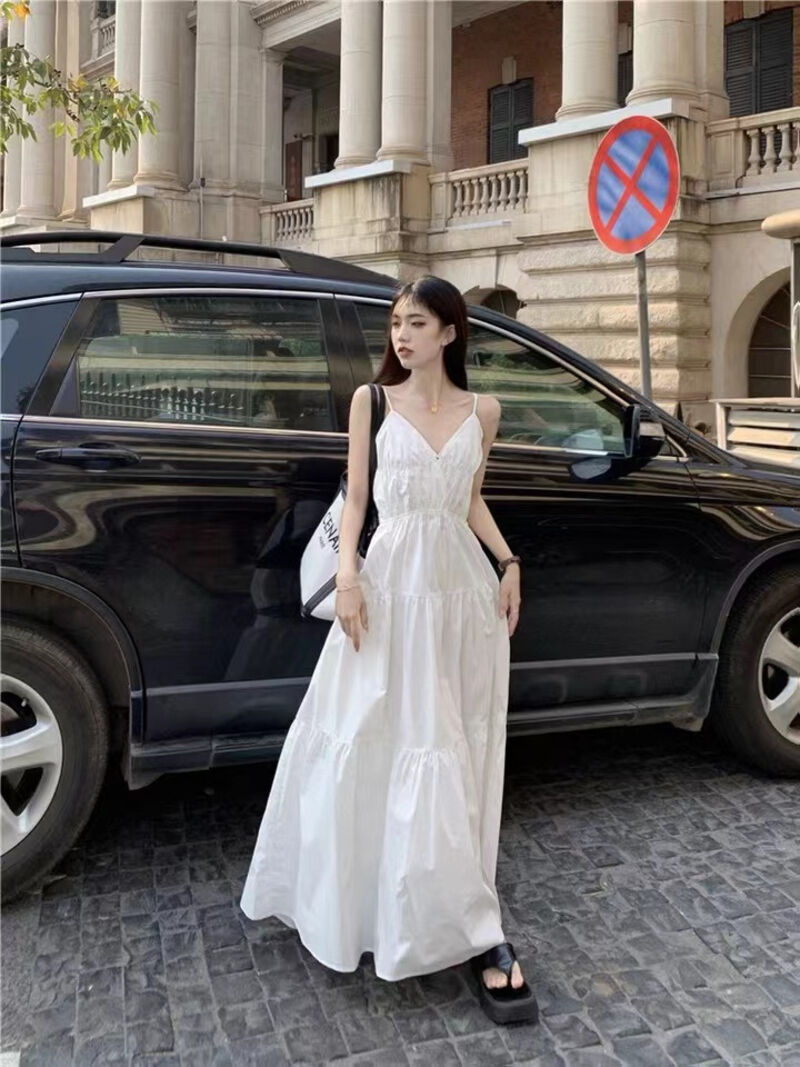 連衣裙女吊帶裙長裙女2025新款法式白色仙女裙吊帶裙海邊度假連衣裙女顯瘦夏季裙子小眾氣質長裙洋裝裙子約會生日優雅長裙女