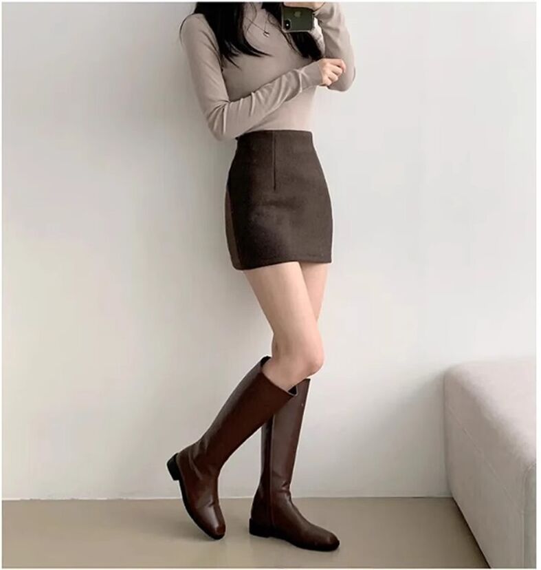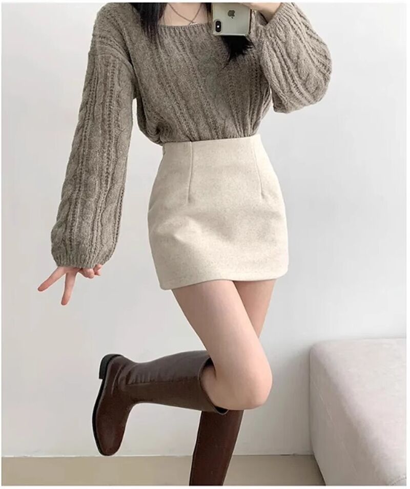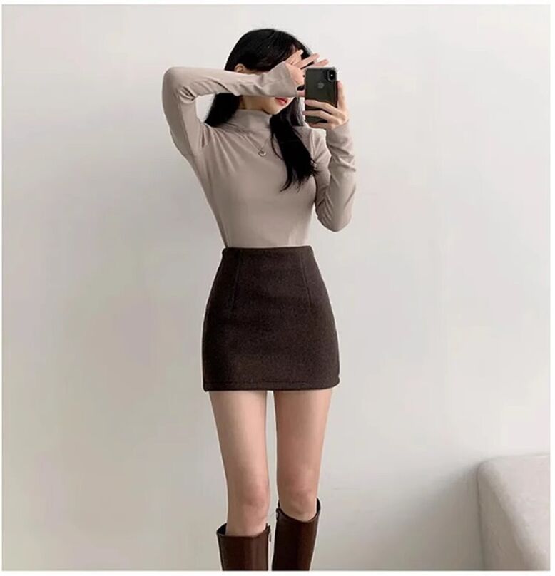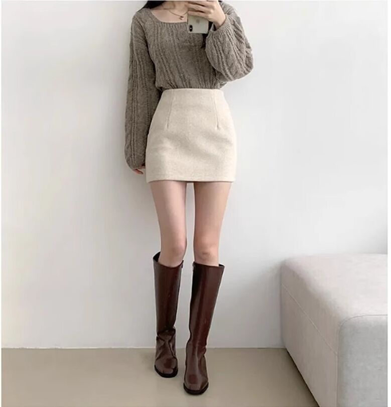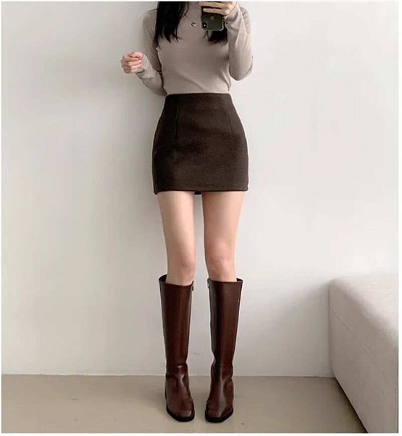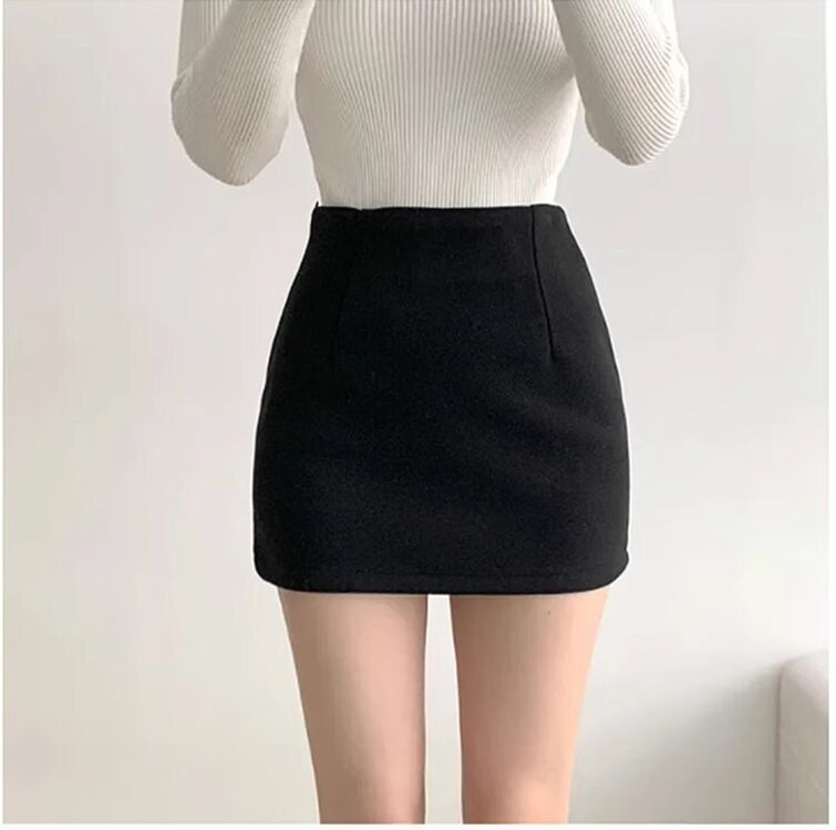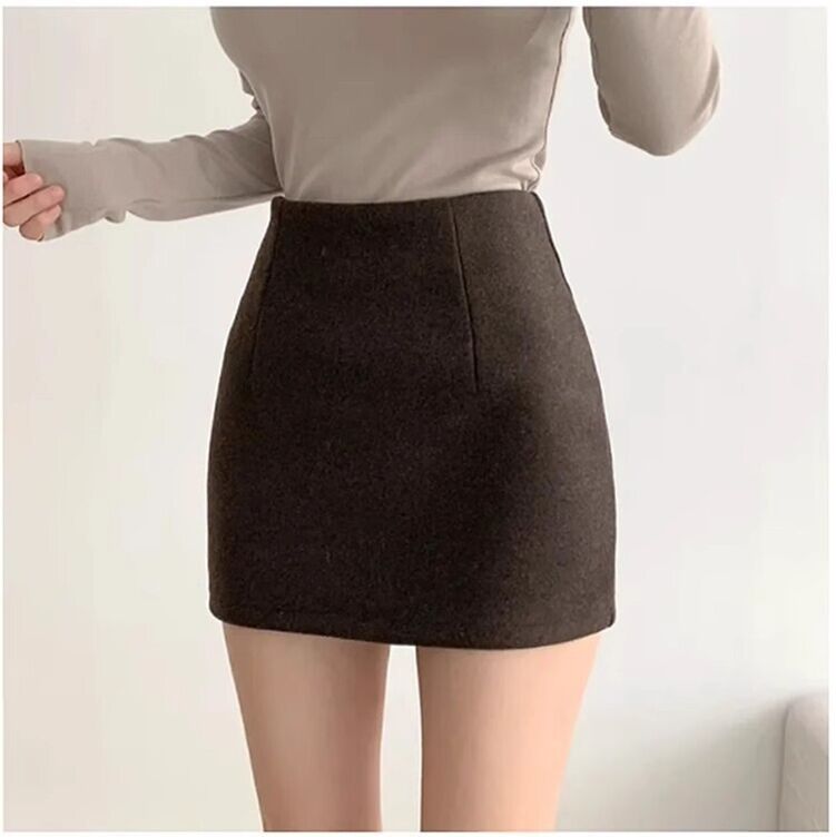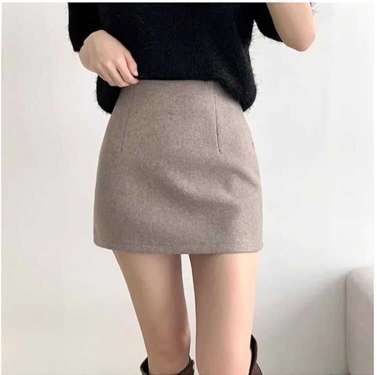 半身裙女短裙秋冬季杏色毛呢半身裙包臀裙女秋冬2025新款小個子百搭通勤短裙洋裝裙子包臀短裙女a字裙約會生日氣質包臀裙