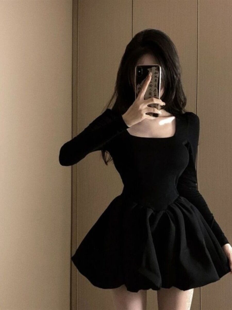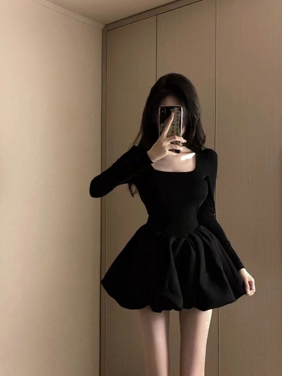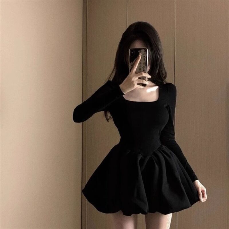 連衣裙女短裙蓬蓬裙法式小香風富家千金感花苞連衣裙女春秋小黑裙生日小禮裙公主蓬蓬短裙洋裝裙子名媛風約會氣質小眾設計感短裙女