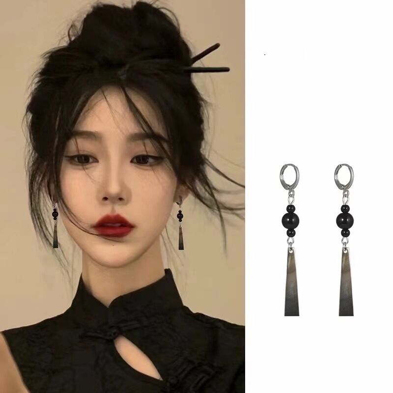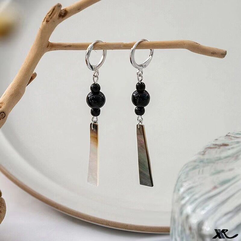 耳環天然黑蝶貝/五彩斑斓新中式長款流蘇耳環高級耳墜清冷水墨感古風輕盈精緻輕奢高級不過敏看不膩超閃耳環耳飾飾品配禮服百搭