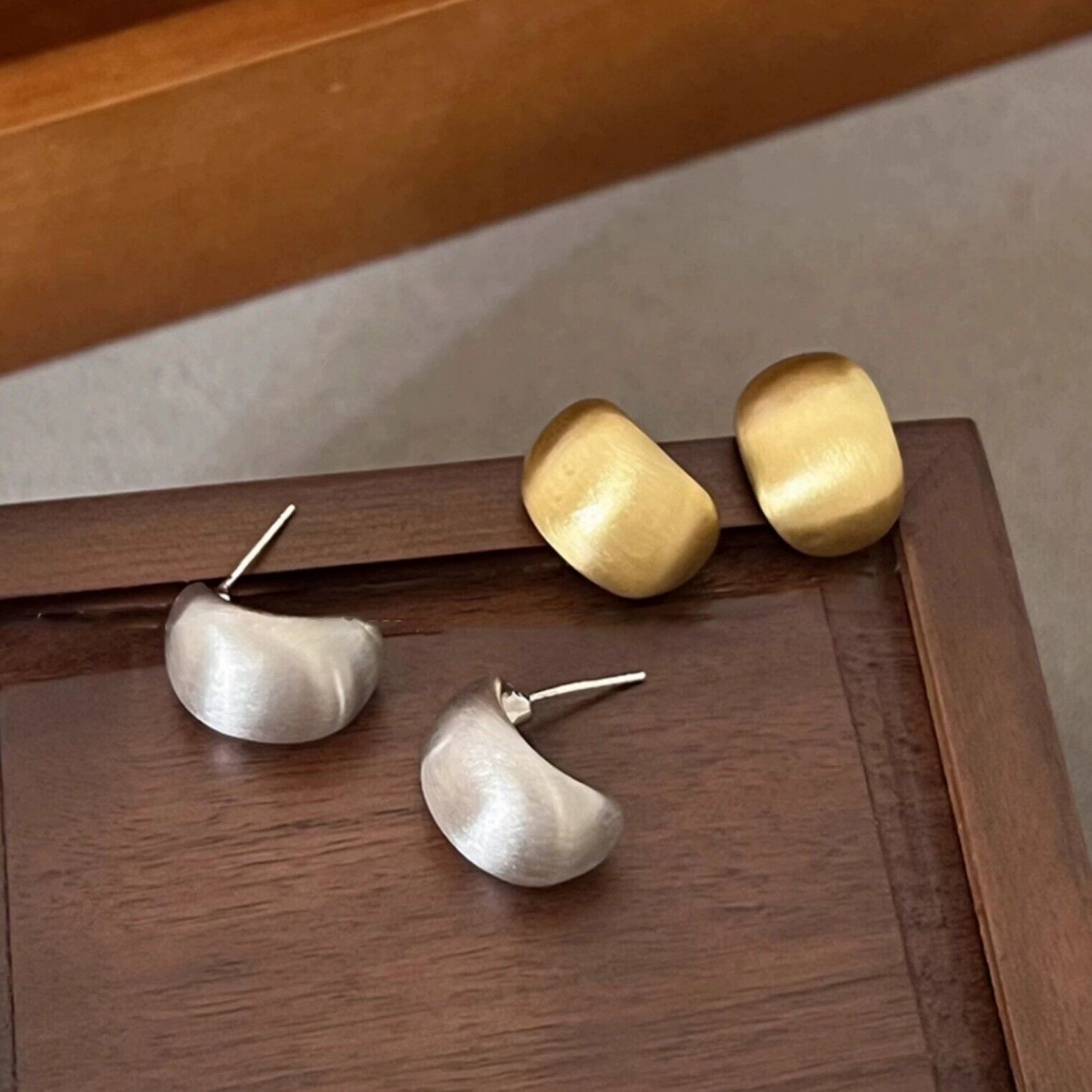 耳環金屬拉絲曲面橢圓耳釘小眾獨特耳環輕奢大氣高級感氣質耳飾輕盈精緻輕奢高級韓國不過敏看不膩超閃耳環耳飾飾品配禮服百搭禮物