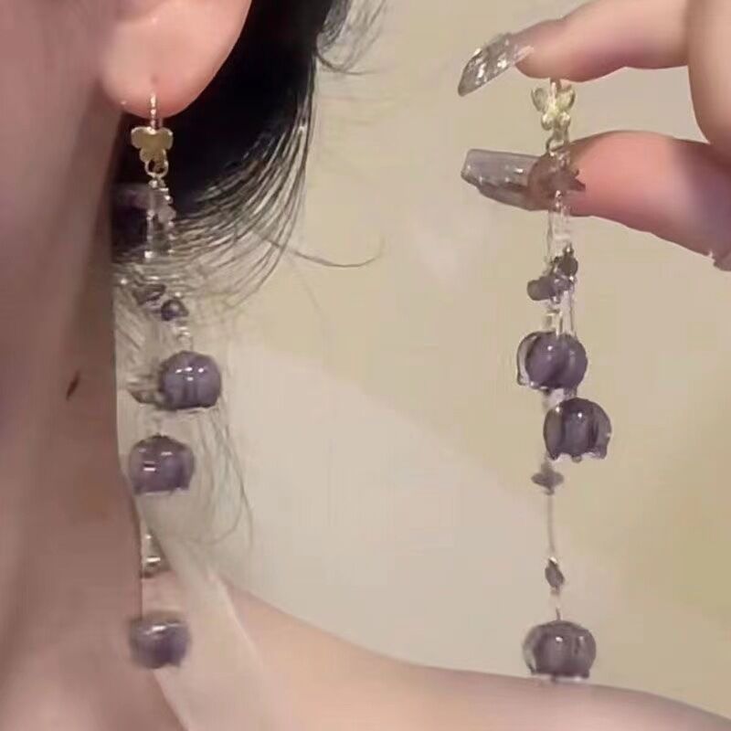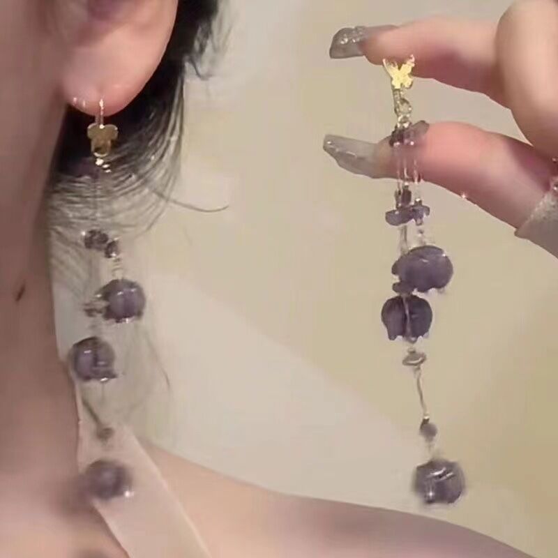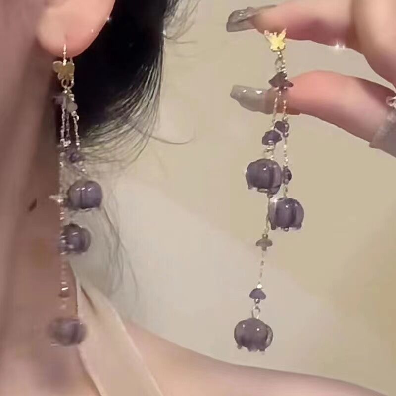 耳環清新田園紫色鈴蘭花耳飾流蘇長款耳墜誇張高級感耳飾耳環 輕盈精緻輕奢高級韓國不過敏看不膩超閃耳環耳飾飾品配禮服百搭禮物