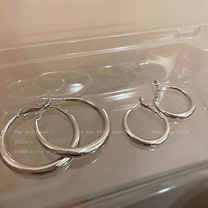 耳環銀色素圈銀針耳圈女新款圓臉耳環輕奢高級感圈圈耳飾輕盈精緻輕奢高級韓國不過敏看不膩超閃耳環耳飾韓系飾品配禮服百搭禮物