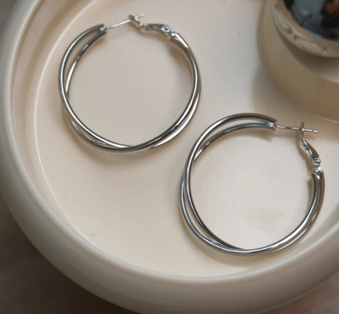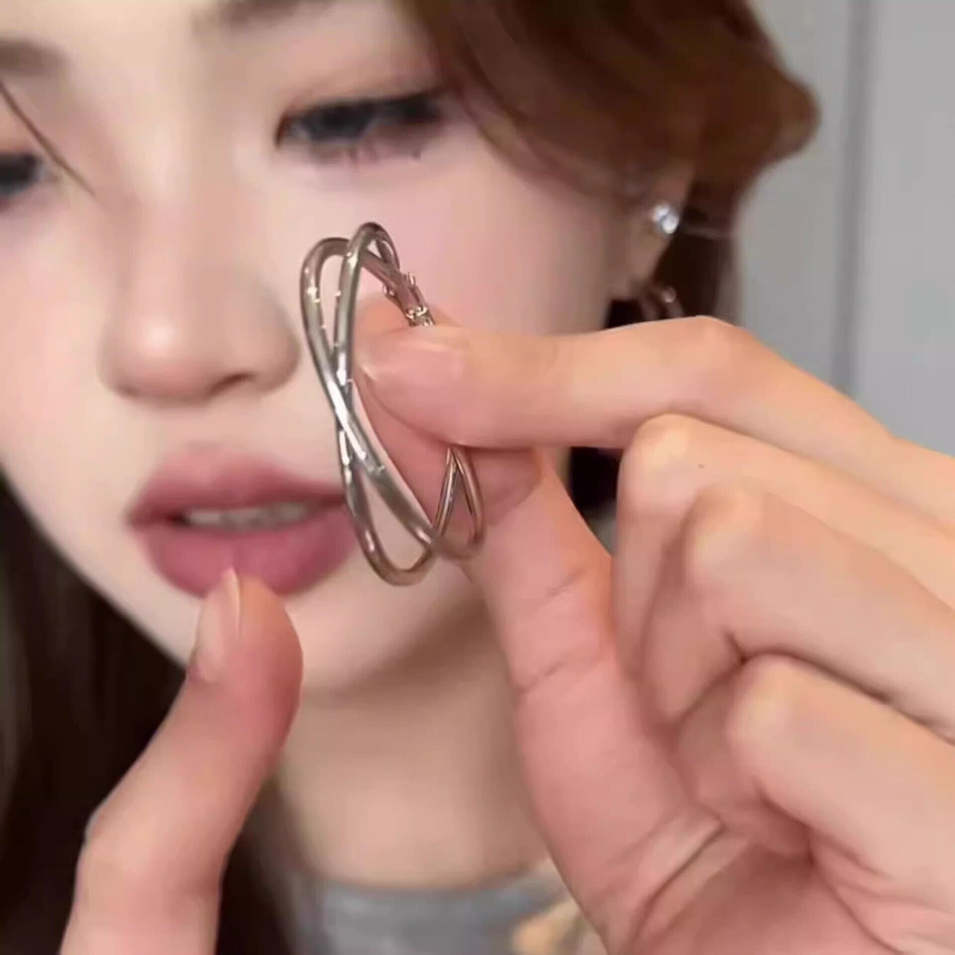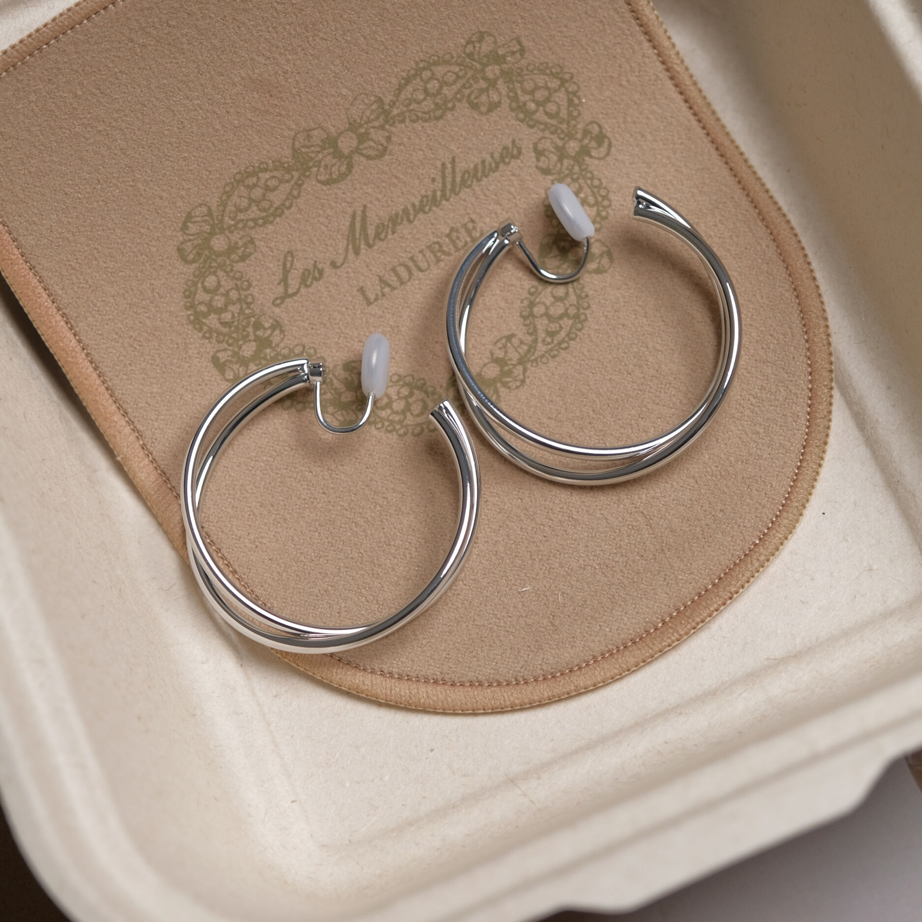 耳環銀色雙層交叉耳圈無耳洞蚊香盤耳夾女小眾設計感素圈耳環顯臉小輕盈精緻輕奢高級韓國不過敏看不膩超閃耳環耳飾配禮服百搭禮物